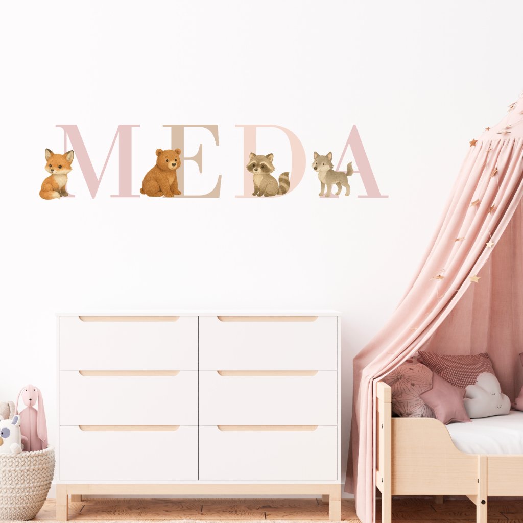 Abeceda se zvířátky - růžovo-hnědá - samolepky na zeď se jménem