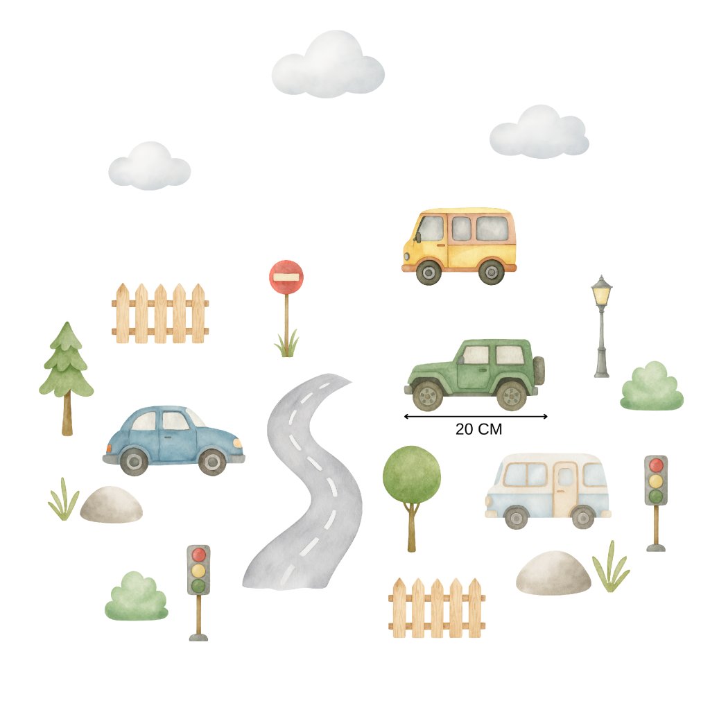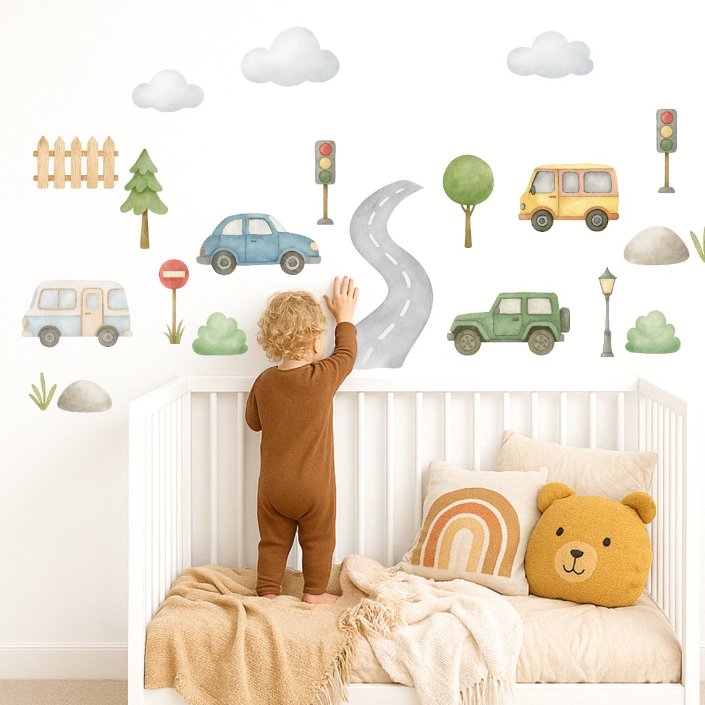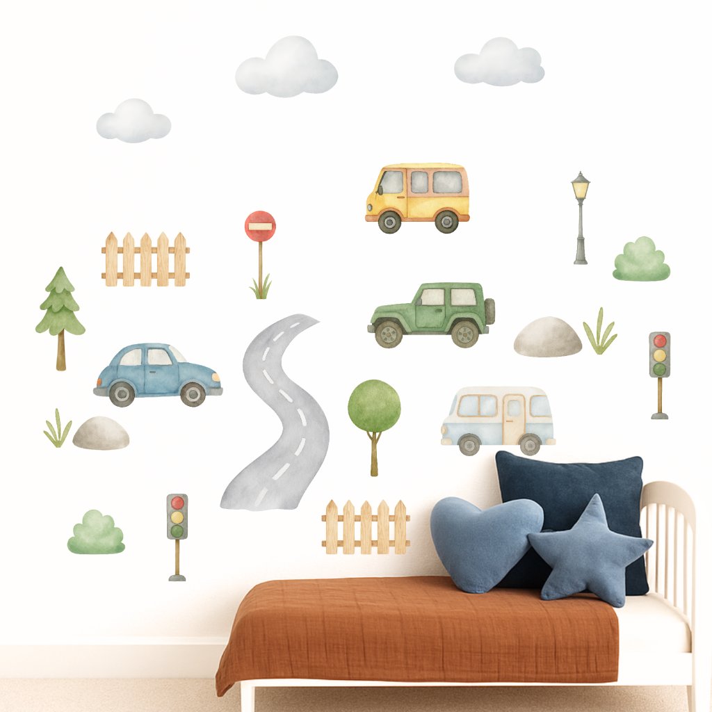 Autíčka a silnice - přemístitelné dětské samolepky na zeď