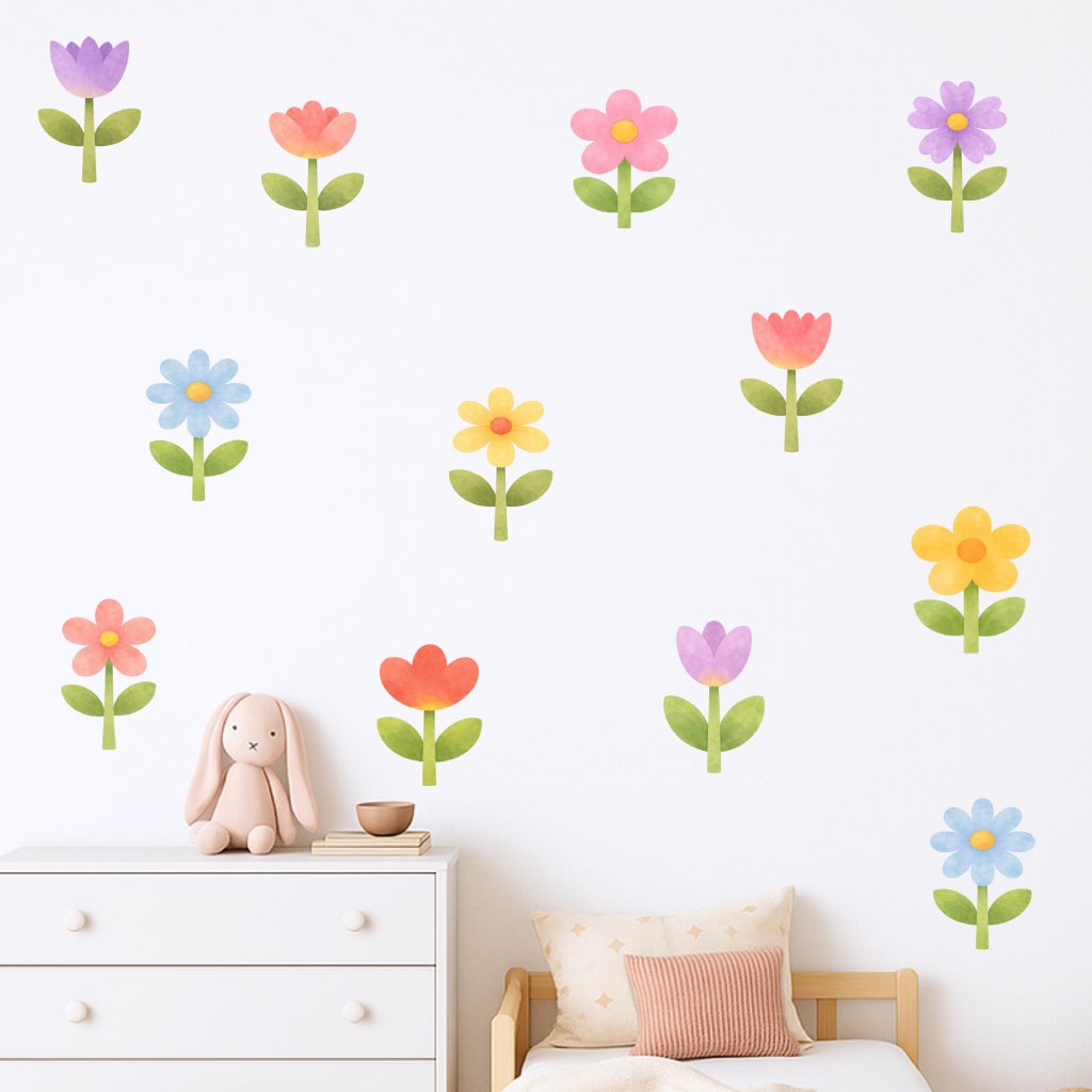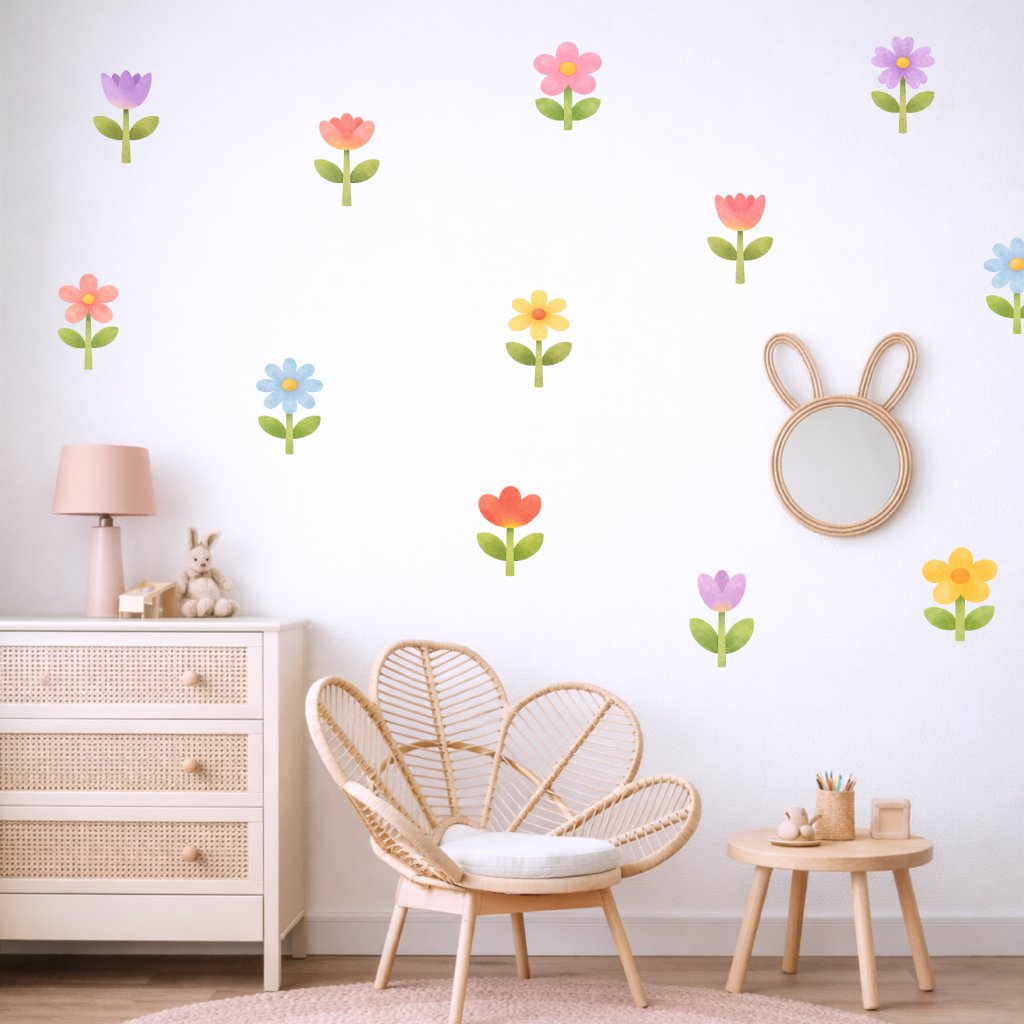 Barevné kytičky - přelepitelné dětské samolepky na zeď
