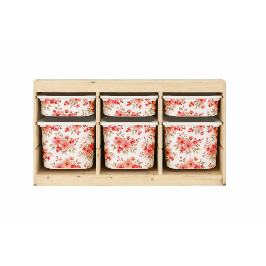 Červené kytičky - samolepky na boxy IKEA TROFAST
