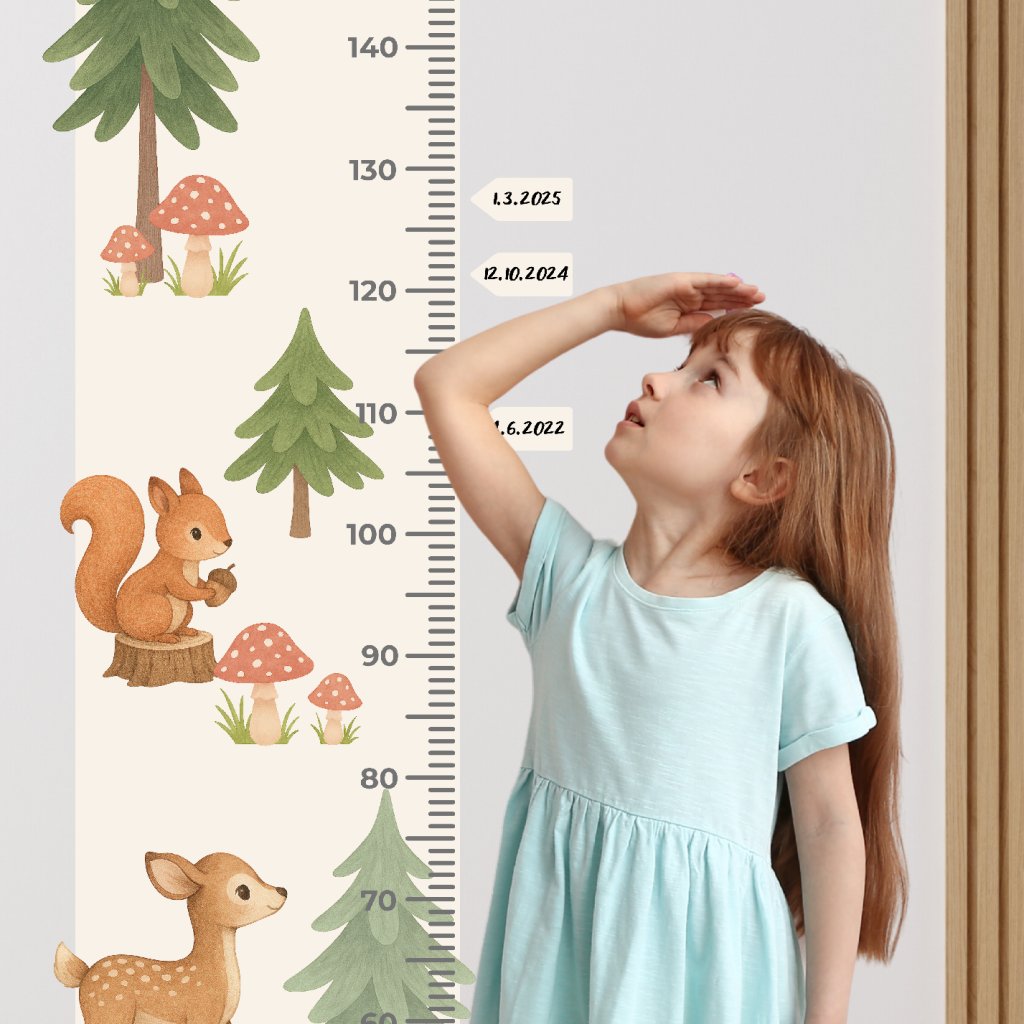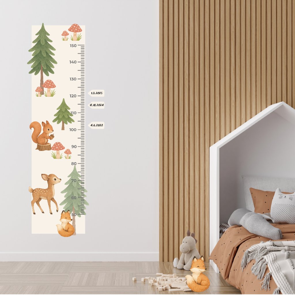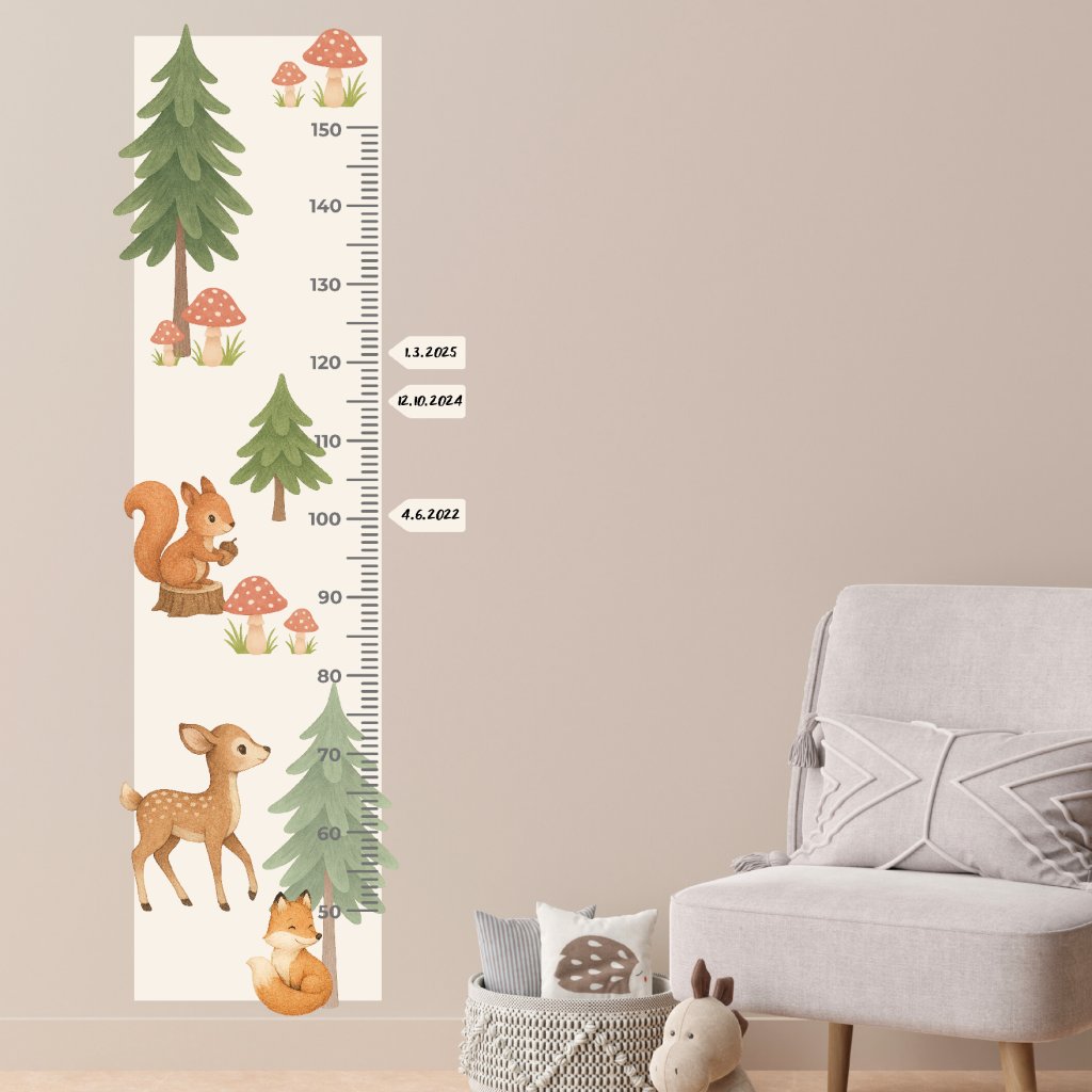 Dětský metr Lesní zvířátka - přelepitelné dětské samolepky na zeď