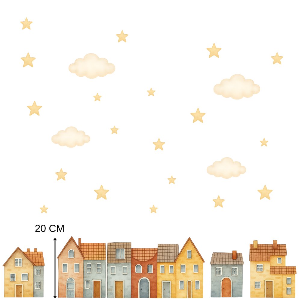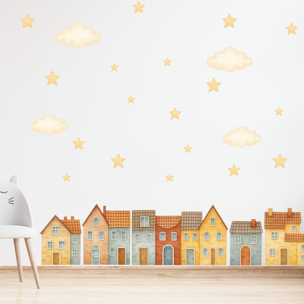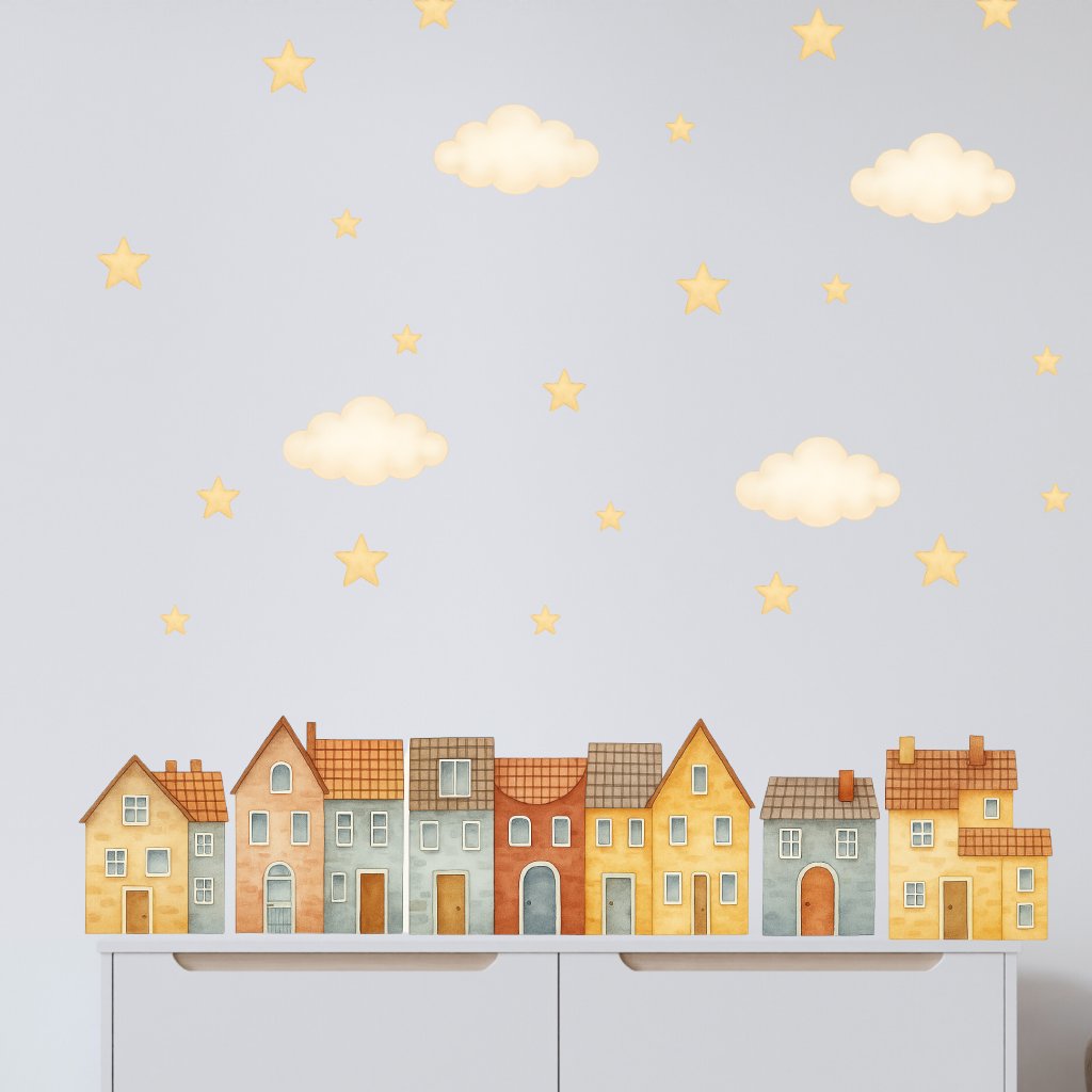 Domečky s mráčky - přelepitelné samolepky na zeď