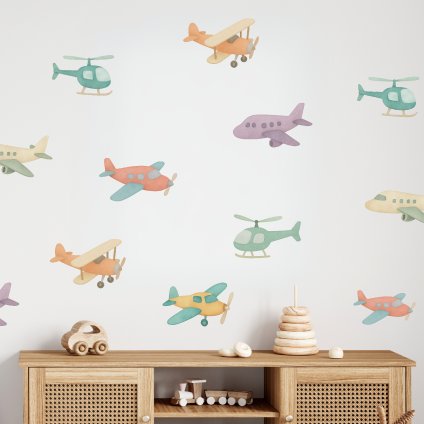 Barevná letadýlka - přemístitelné dětské samolepky na zeď