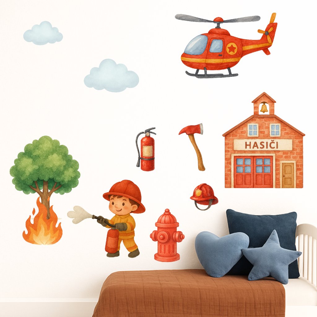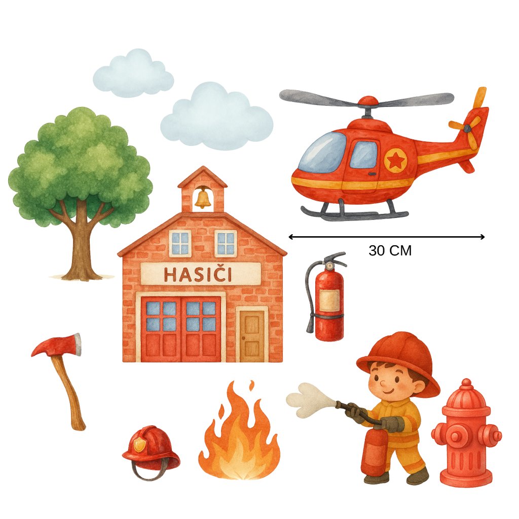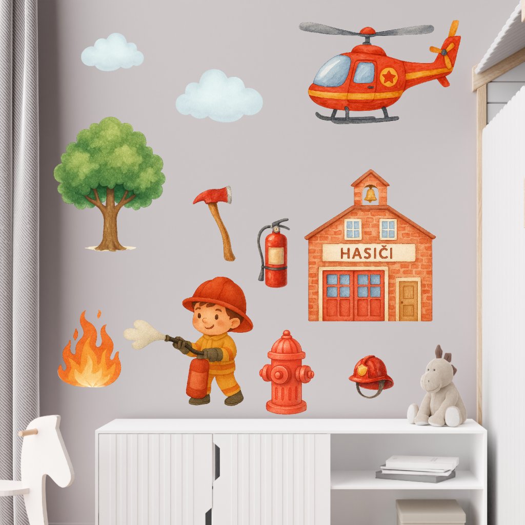 Připravte se na akci! Malý hasič, vrtulník, stanice, hydrant i hořící strom – tahle sada samolepek promění pokojíček v záchranářské dobrodružství plné odvahy a fantazie. Skvělá volba pro všechny malé hrdiny, kteří milují hasiče a jejich svět!