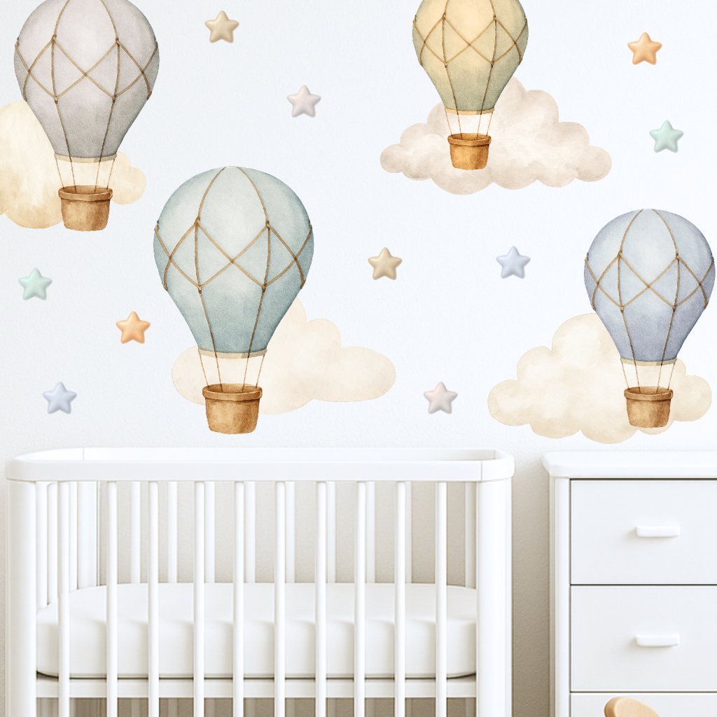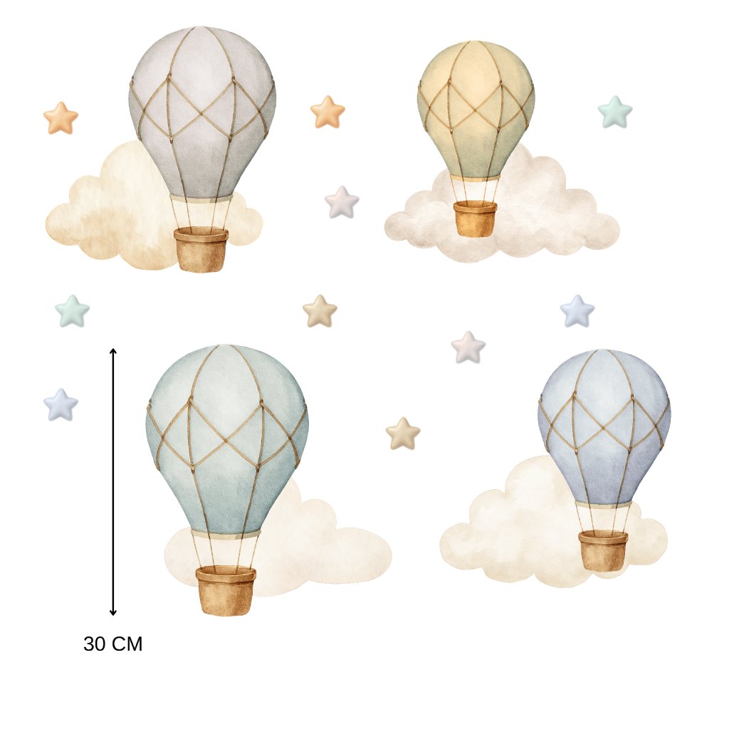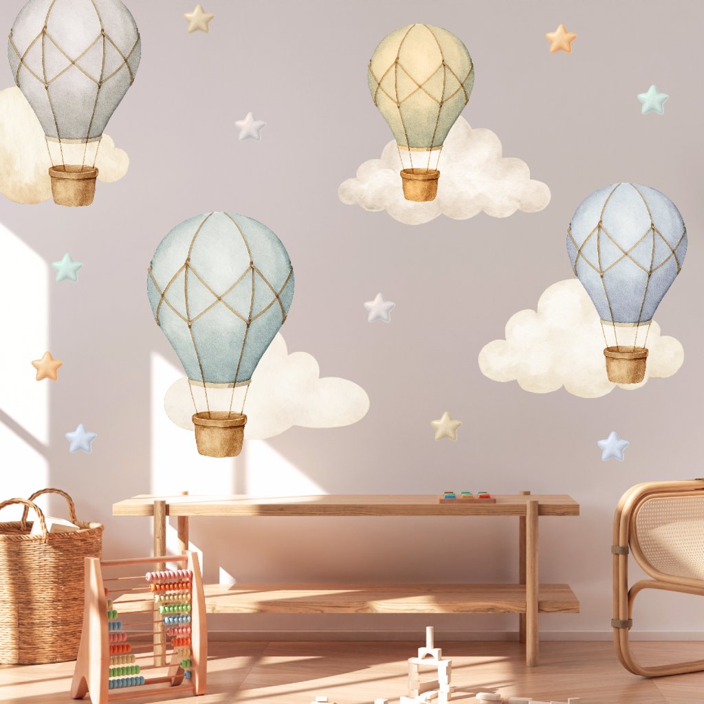 Horkovzdušné balony a hvězdičky - přelepitelné samolepky na zeď
