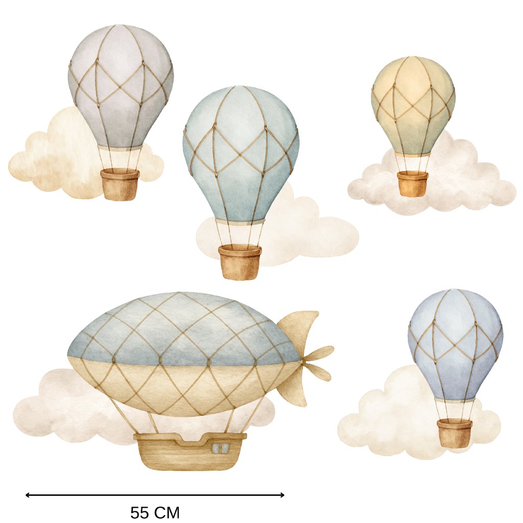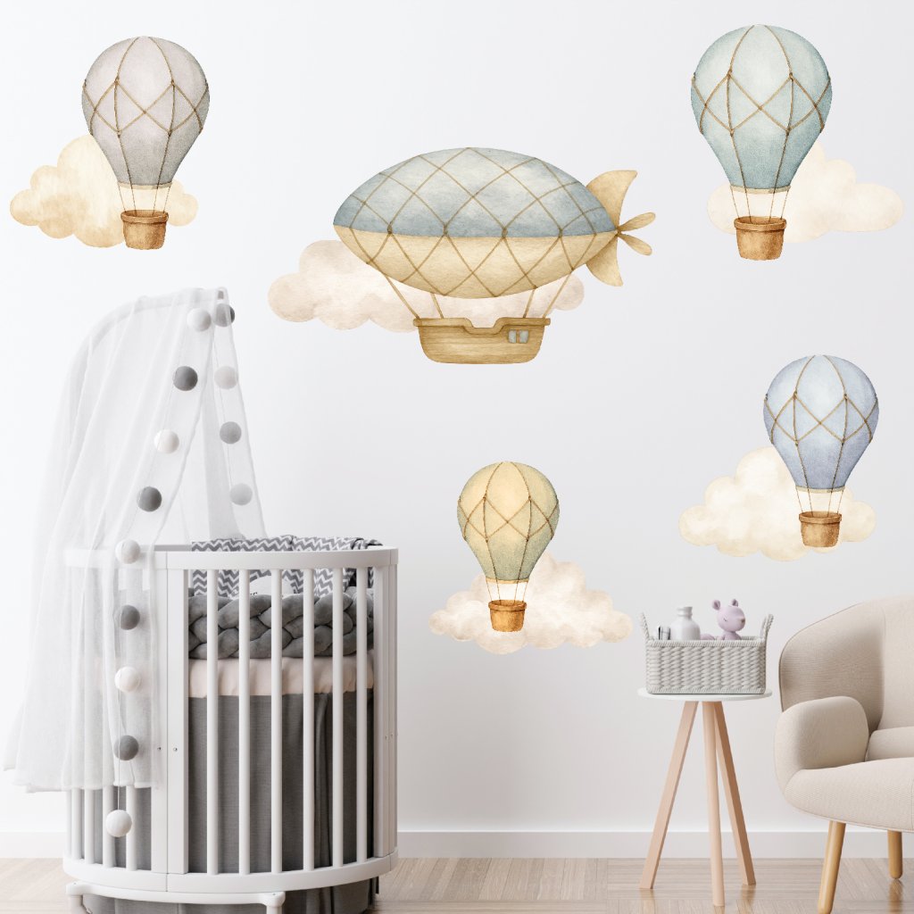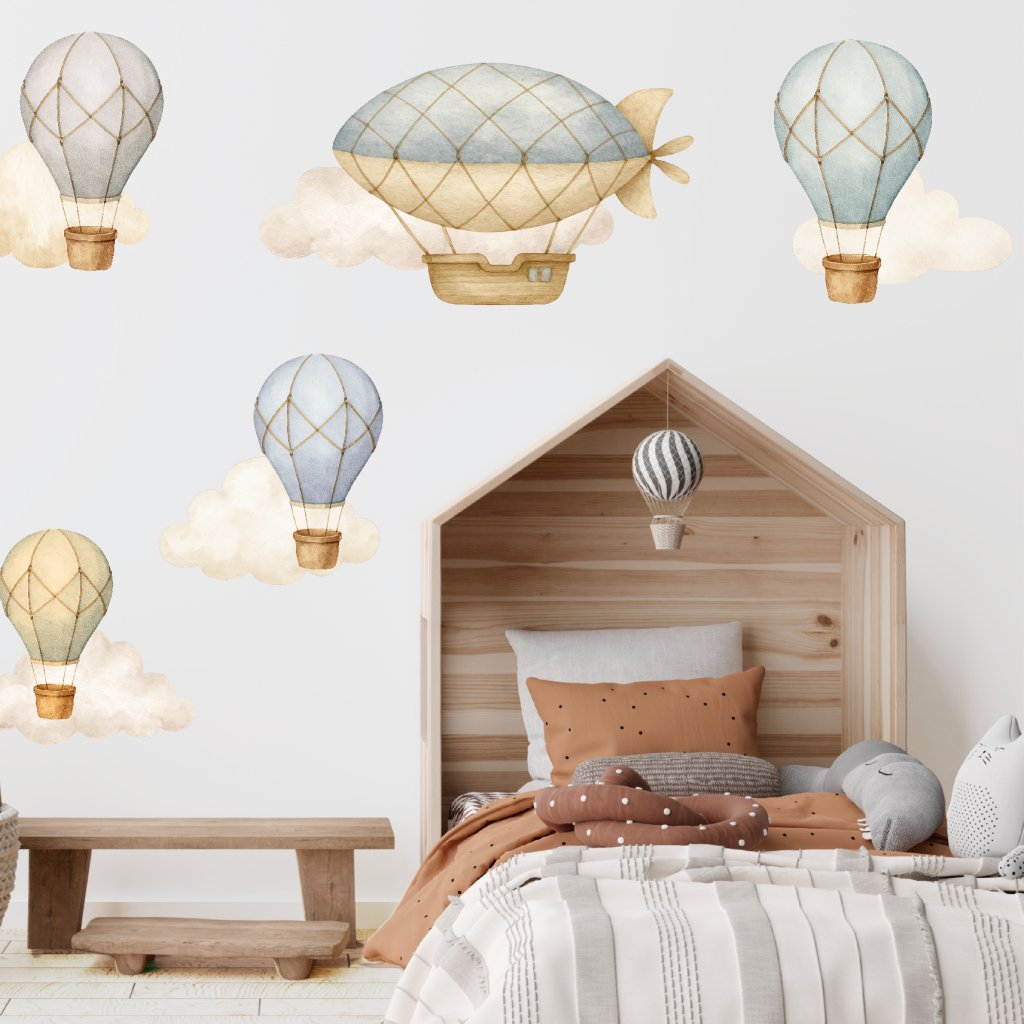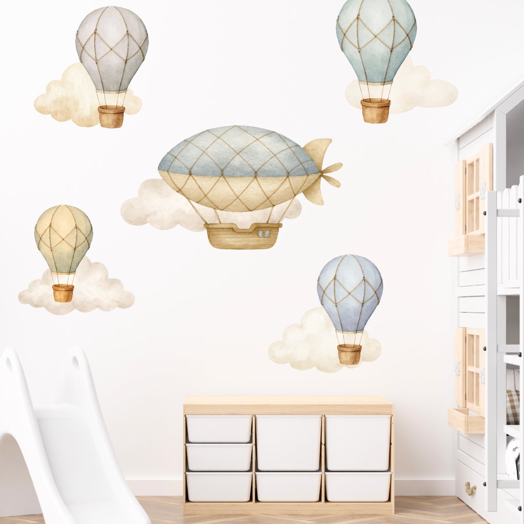 Horkovzdušné balony a vzducholoď - přelepitelné samolepky na zeď