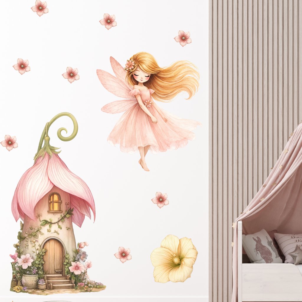 Vytvořte v dětském pokoji kouzelný svět s našimi samolepkami něžné víly, pohádkového domečku schovaného v květu a rozkvetlých květin. Jemné pastelové barvy a pohádkový design potěší malé princezny a promění pokojík v kouzelné místo plné fantazie.