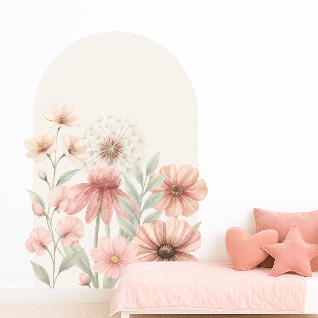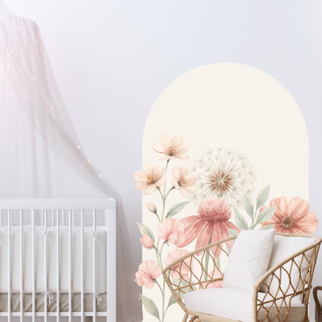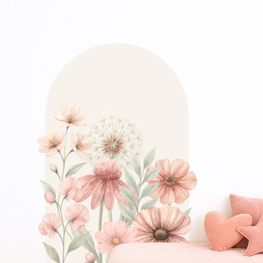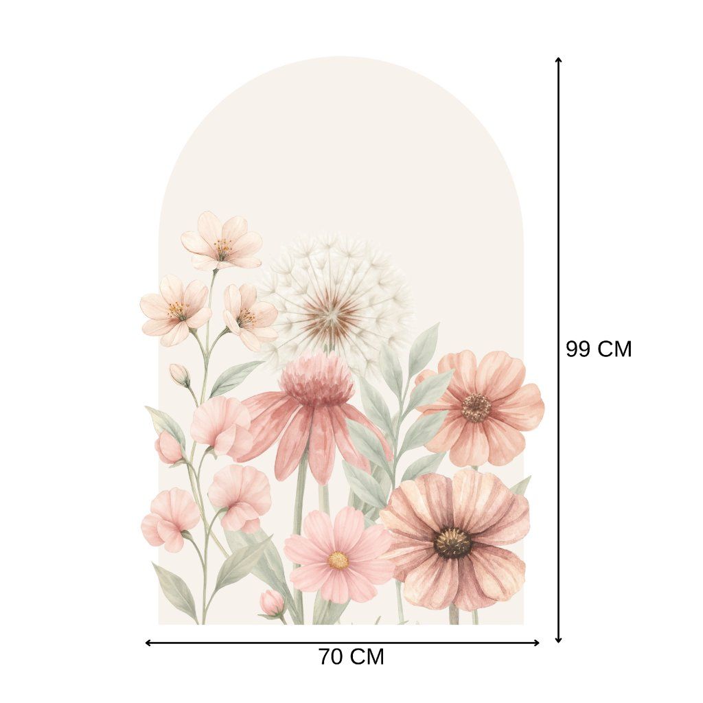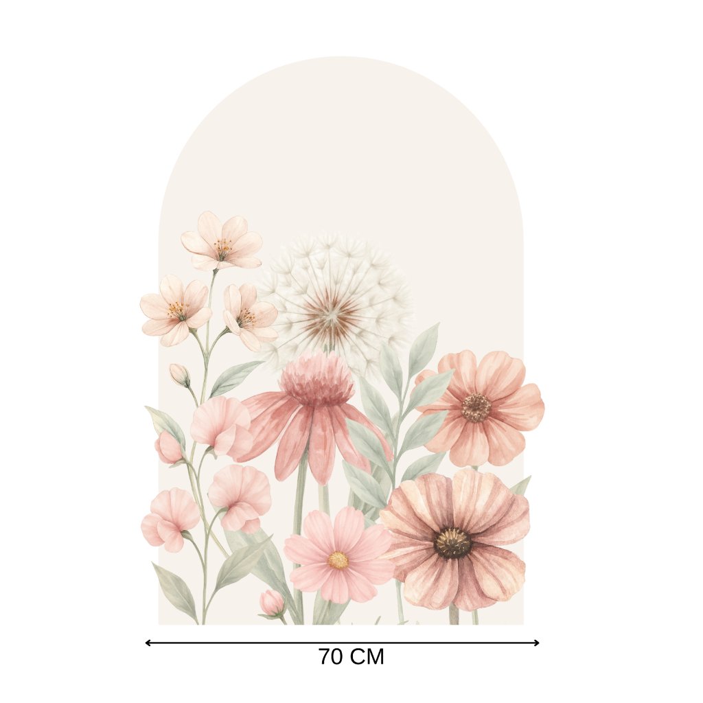 Rozjasněte pokojíček nádherným květinovým obloukem v jemných béžových a růžových tónech. Ideální pro vytvoření hřejivého, útulného prostoru pro holčičky i všechny děti, které milují přírodní motivy a pastelové barvy.
