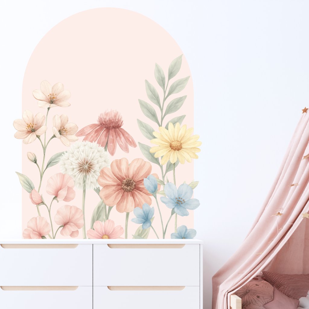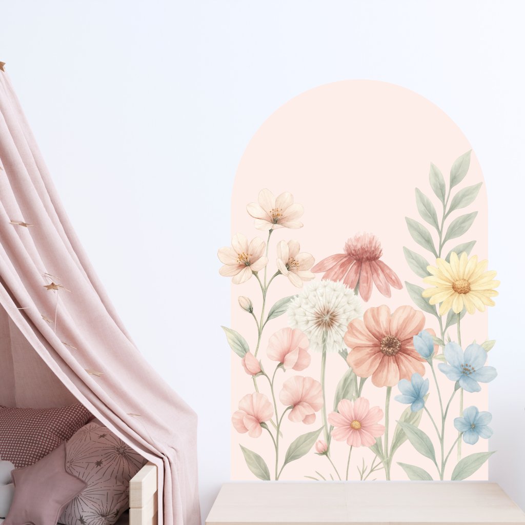 Vneste do dětského pokojíčku jemnost a barvy přírody díky půvabnému květinovému oblouku v něžných pastelových tónech. Ideální pro malé princezny i každé dítko, kterému chcete vytvořit krásné a harmonické místo na hraní a odpočinek.