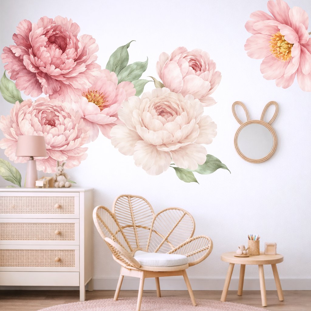 Dodejte interiéru lehkost a eleganci s něžnými květy pivoněk v jemných růžových tónech, které vytvářejí klidnou a harmonickou atmosféru.