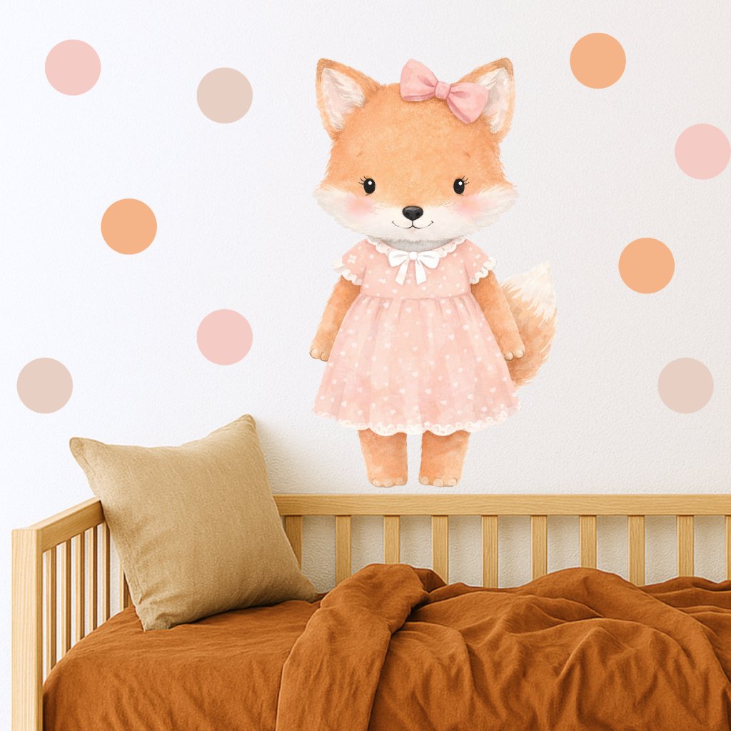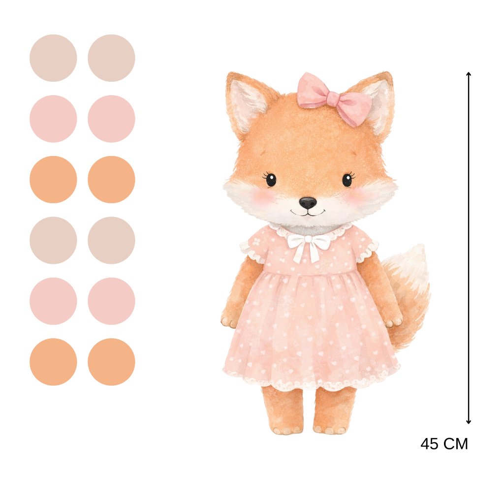 Roztomilá lištička v něžných tónech doplněná hravými puntíky vytvoří jemnou a veselou dekoraci plnou pohody. Ideální pro malé milovnice zvířátek.