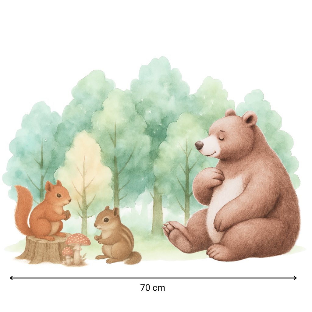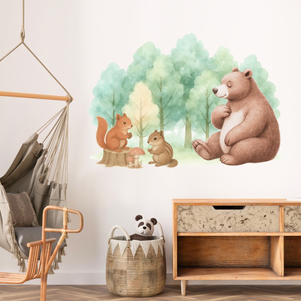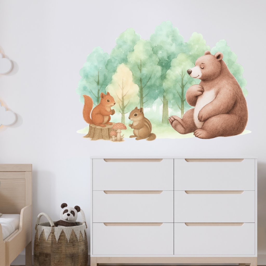 Medvídek a zvířátka - v lese - přelepitelné dětské samolepky na zeď