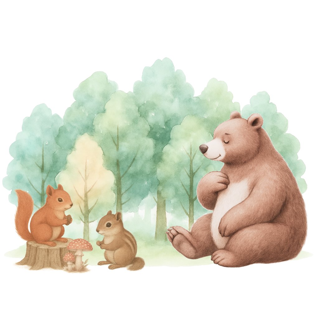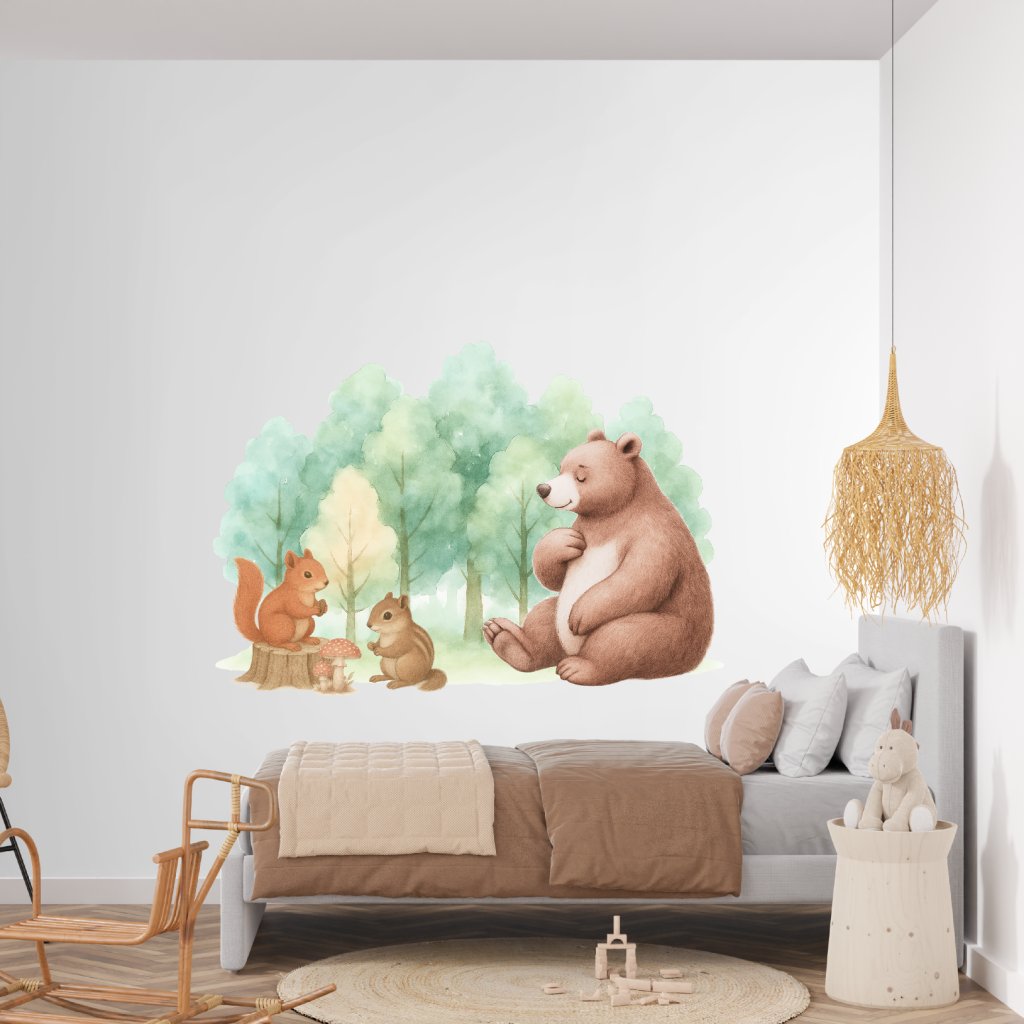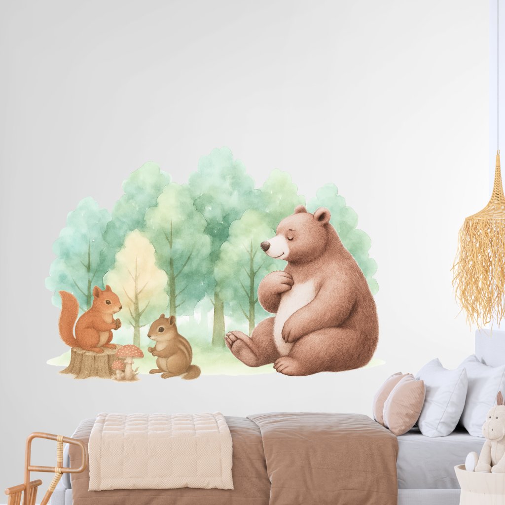 Medvídek a zvířátka - v lese - přelepitelné dětské samolepky na zeď