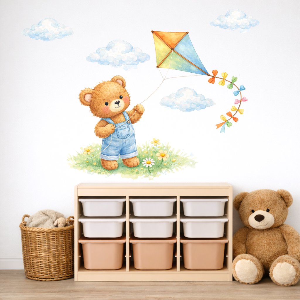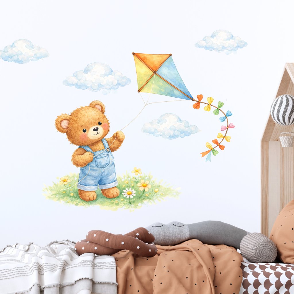 Medvídek s drakem - dětské textilní samolepky na zeď