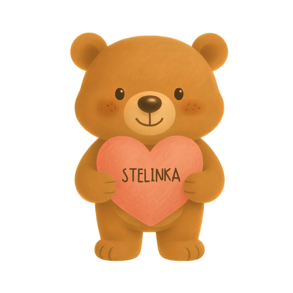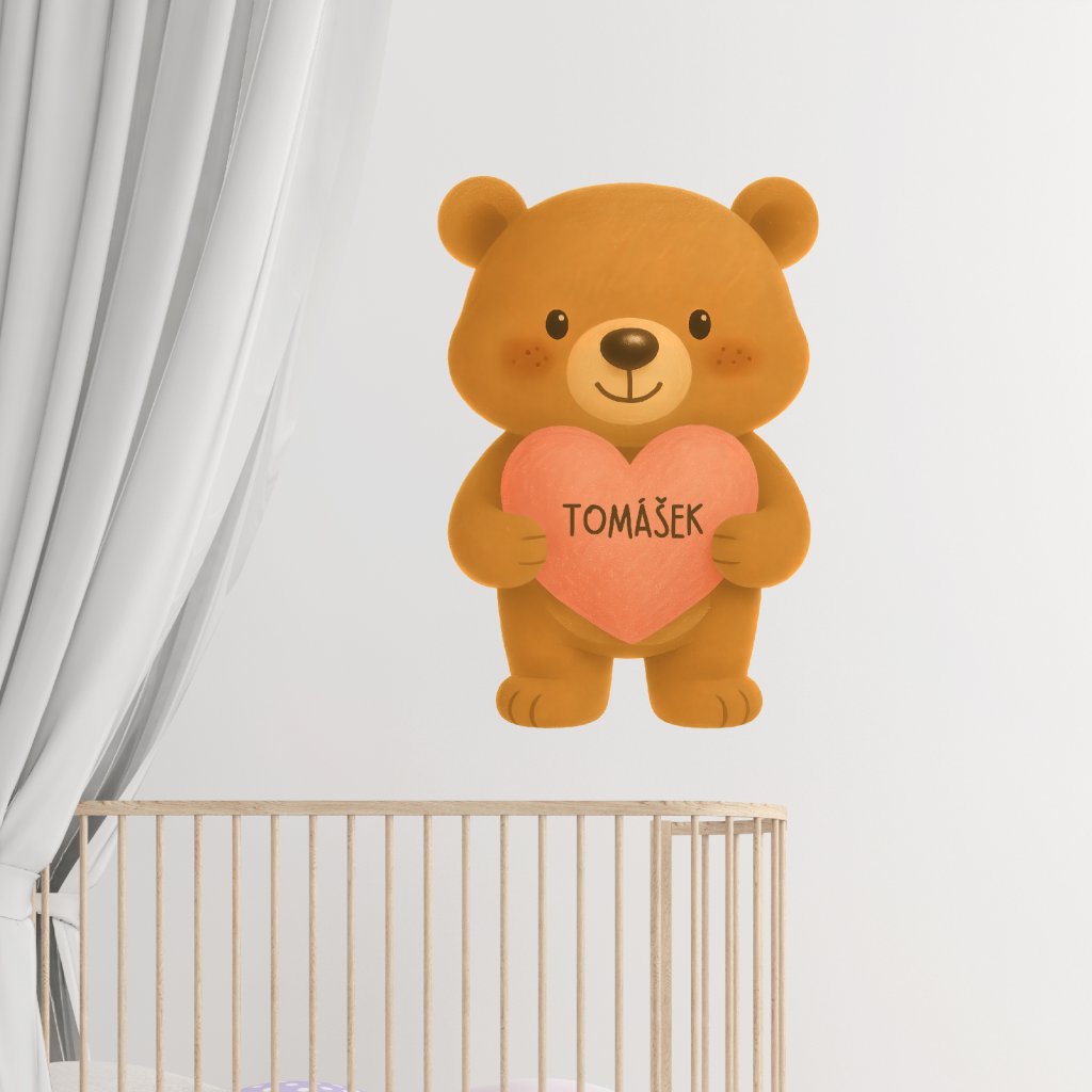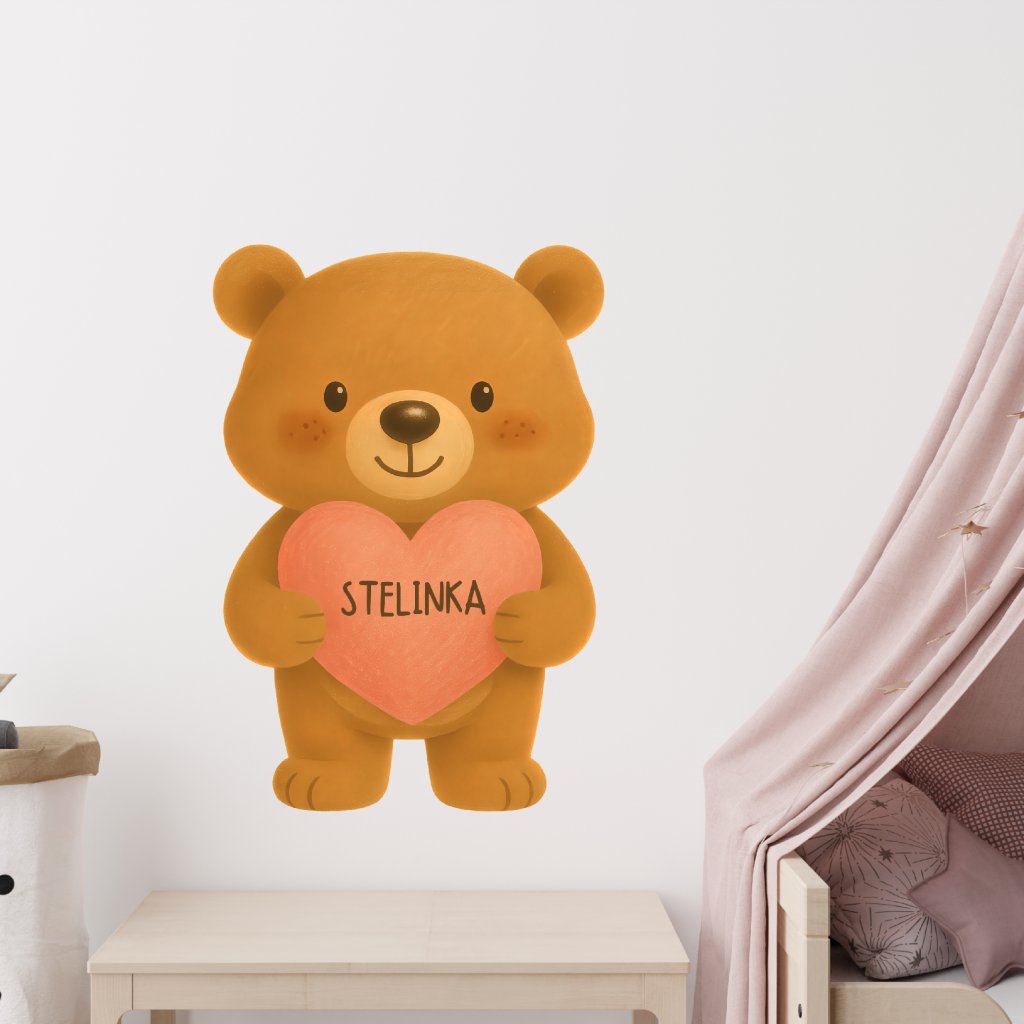 Medvídek se srdíčkem - samolepky na zeď se jménem