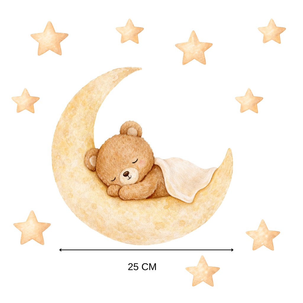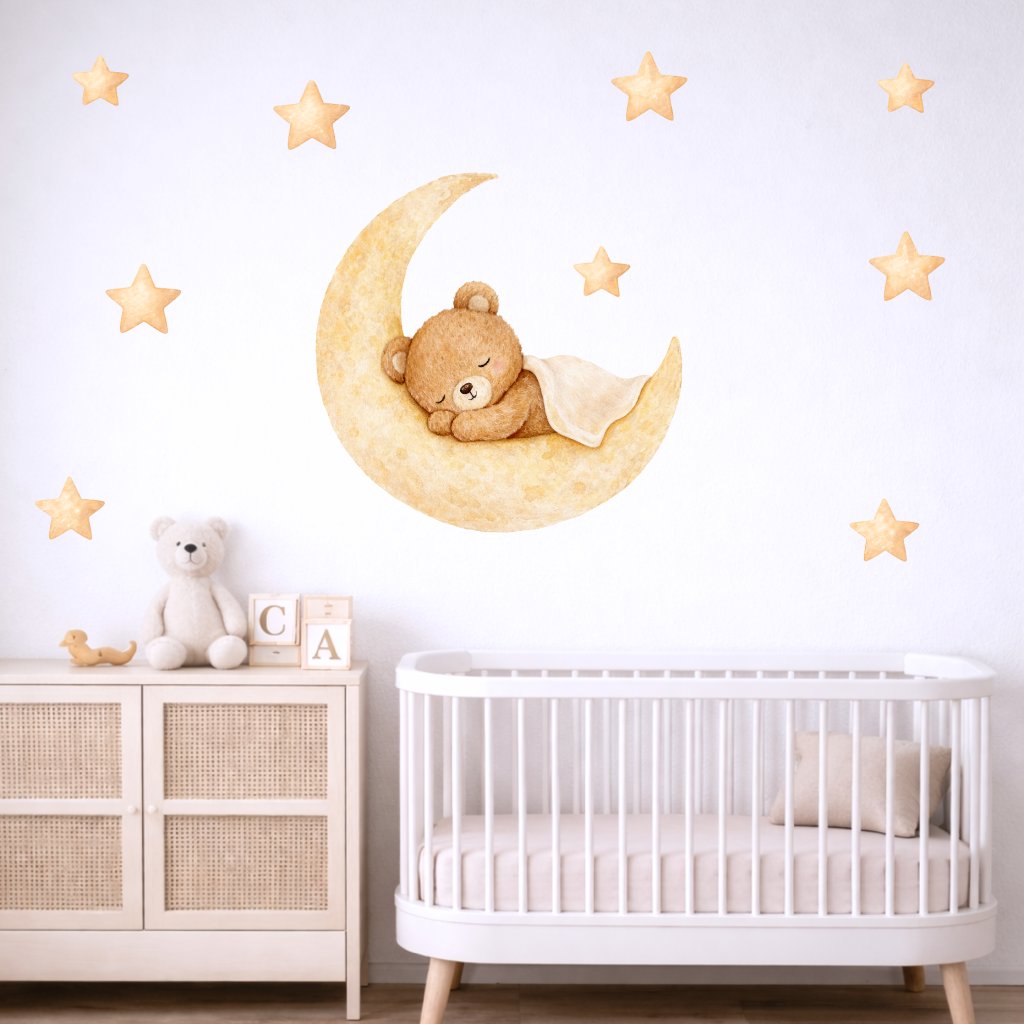 Medvídek spící na měsíčku - přelepitelné samolepky na zeď