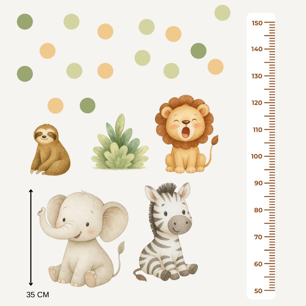 Metr Zvířátka z Afriky - přelepitelné dětské samolepky na zeď