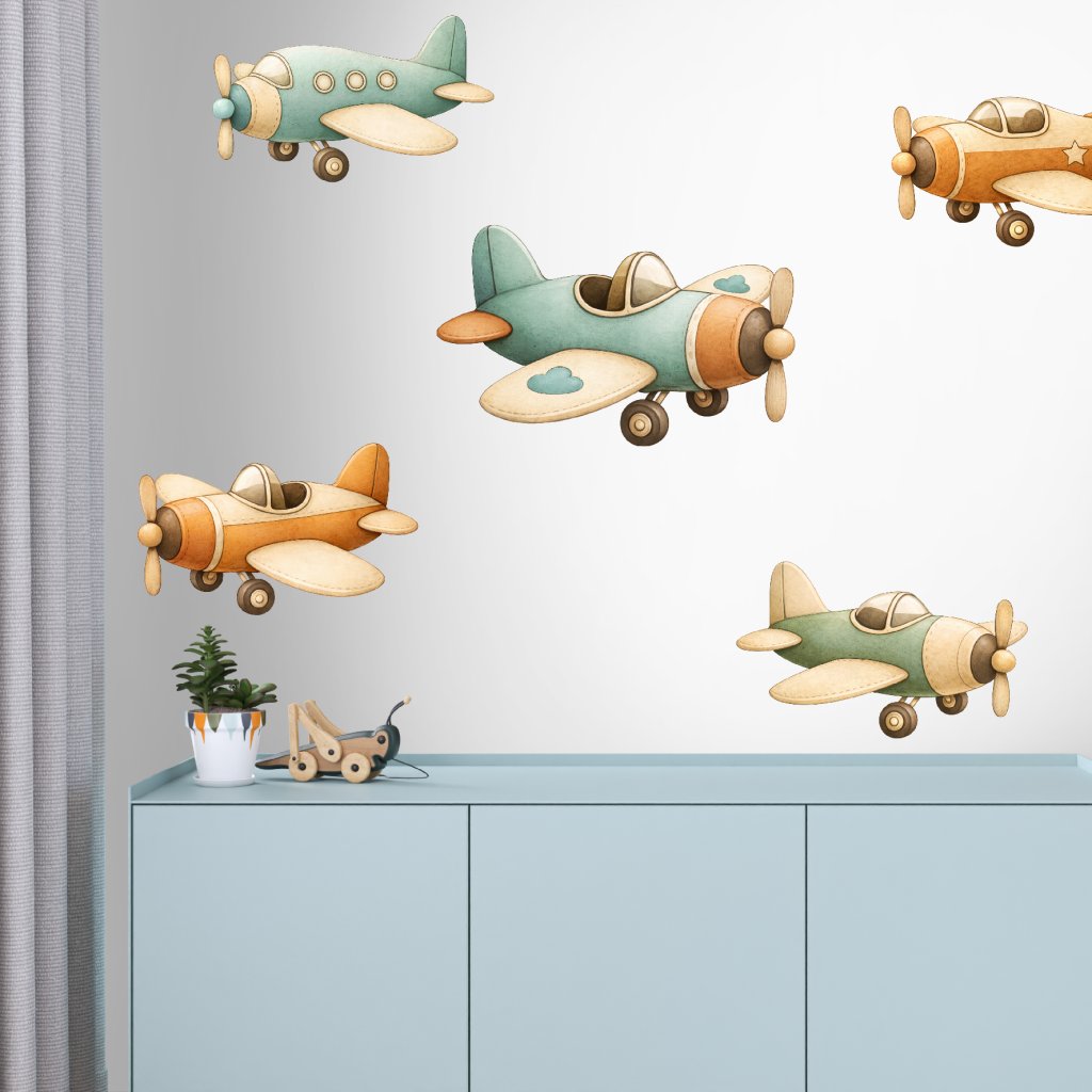 Modrá letadla - přelepitelné samolepky na zeď