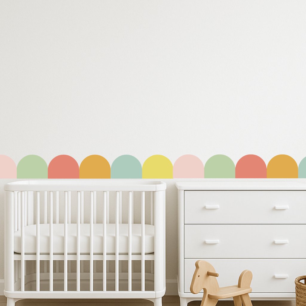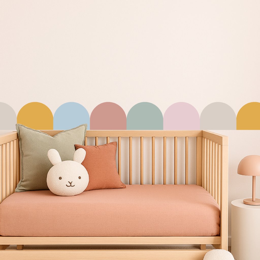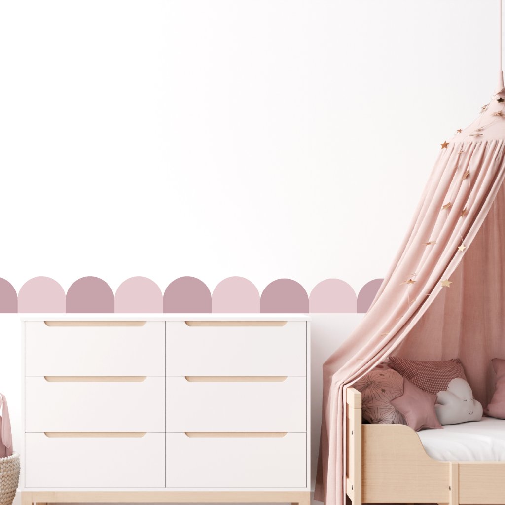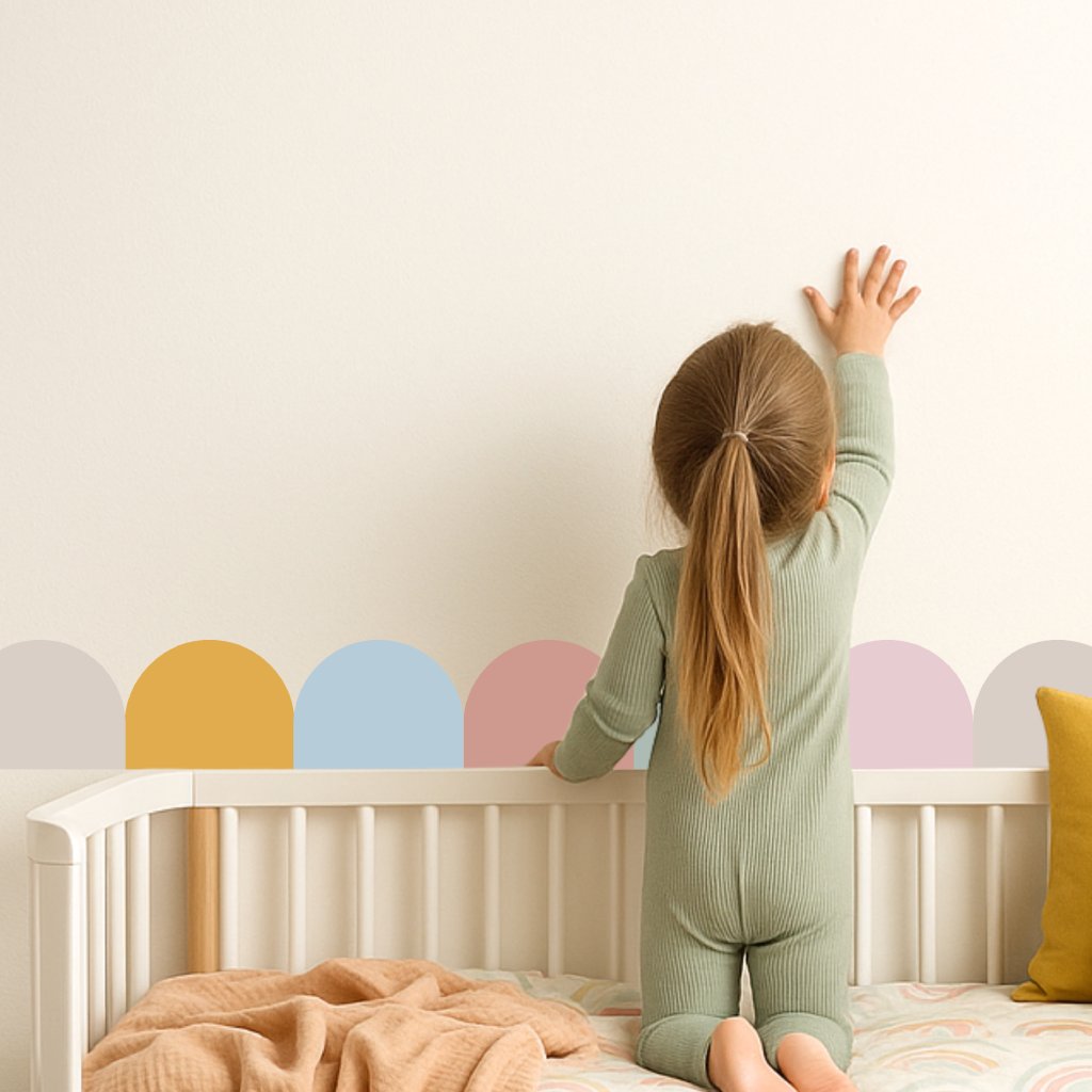 Vneste do dětského pokoje jemnost a hravost s našimi samolepkami lemovacích obloučků. Tato minimalistická a zároveň roztomilá dekorace se skvěle hodí nad postýlku, komodu nebo po obvodu celé místnosti. Skvěle vypadá jen tak nebo ji můžete kombinovat s dalšími samolepkami pro ještě zajímavější efekt.