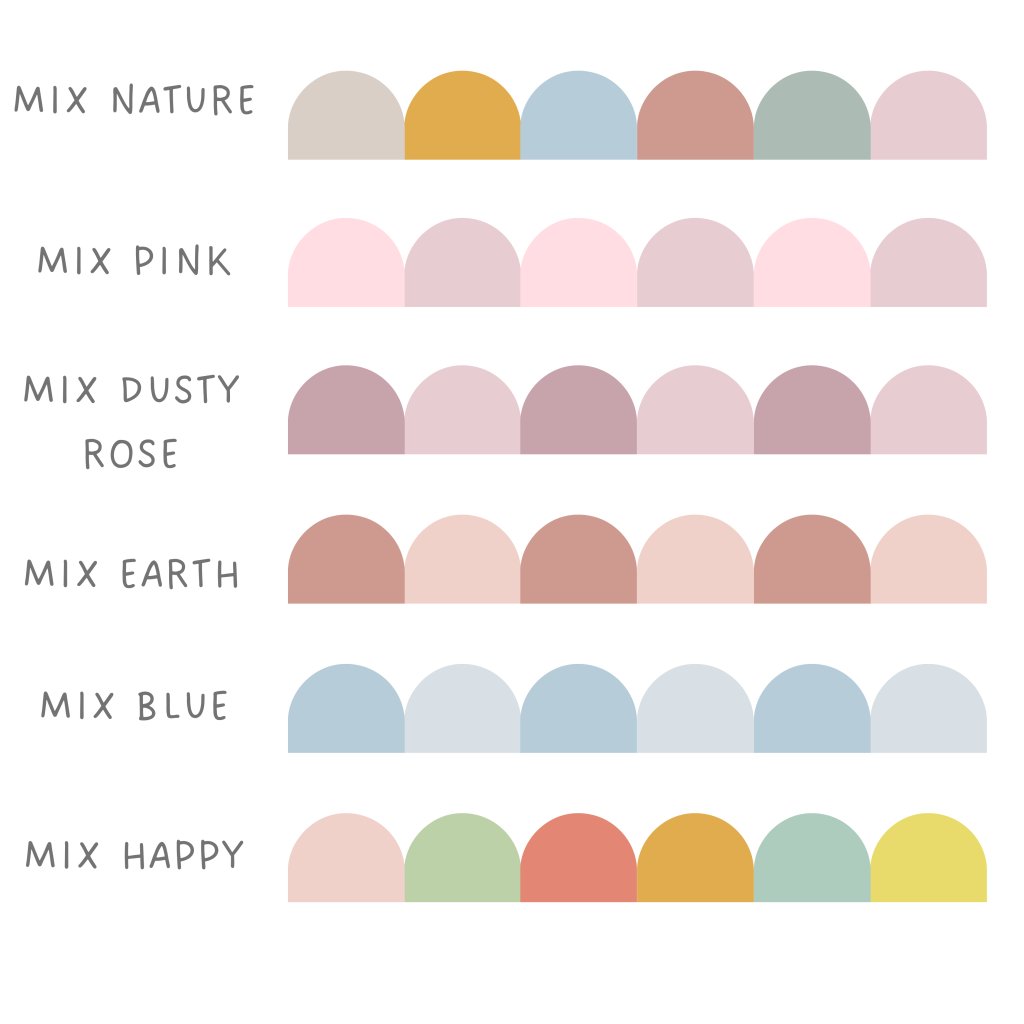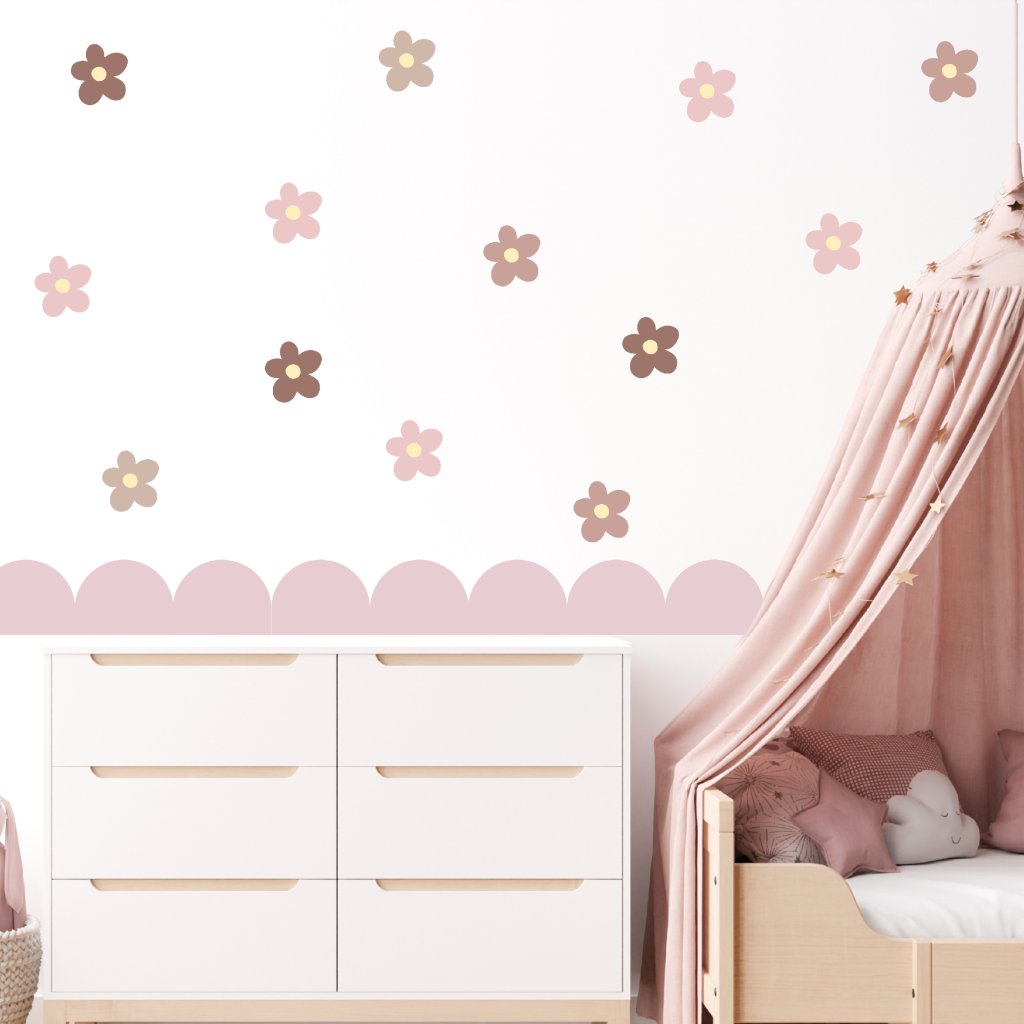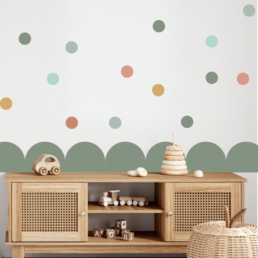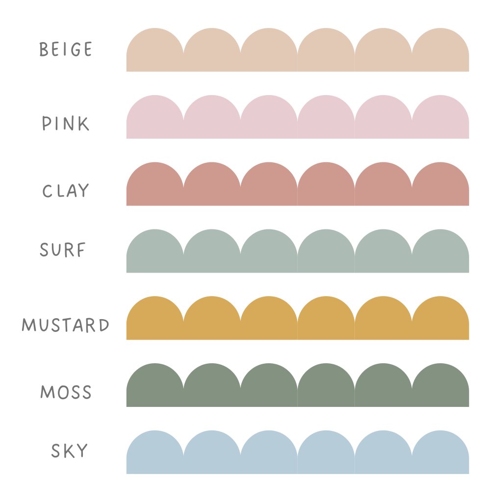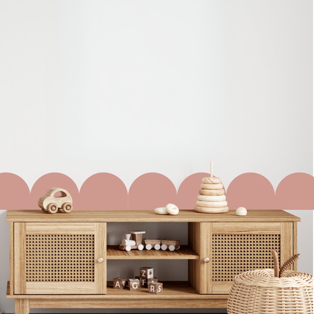 Vneste do dětského pokoje jemnost a hravost s našimi samolepkami lemovacích obloučků. Tato minimalistická a zároveň roztomilá dekorace se skvěle hodí nad postýlku, komodu nebo po obvodu celé místnosti. Skvěle vypadá jen tak nebo ji můžete kombinovat s dalšími samolepkami pro ještě zajímavější efekt.