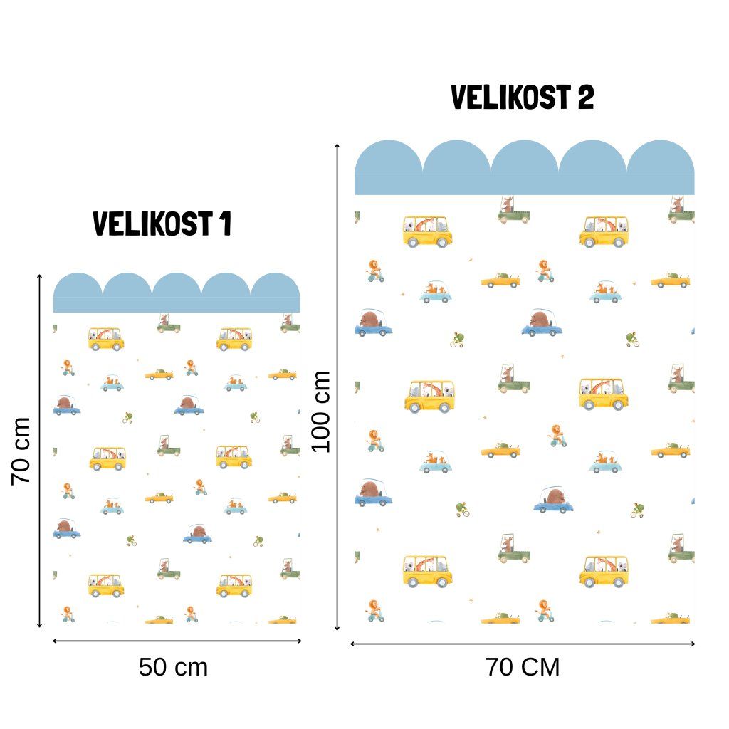Oblouky Autíčka se zvířátky - přelepitelné lemovací samolepky na zeď