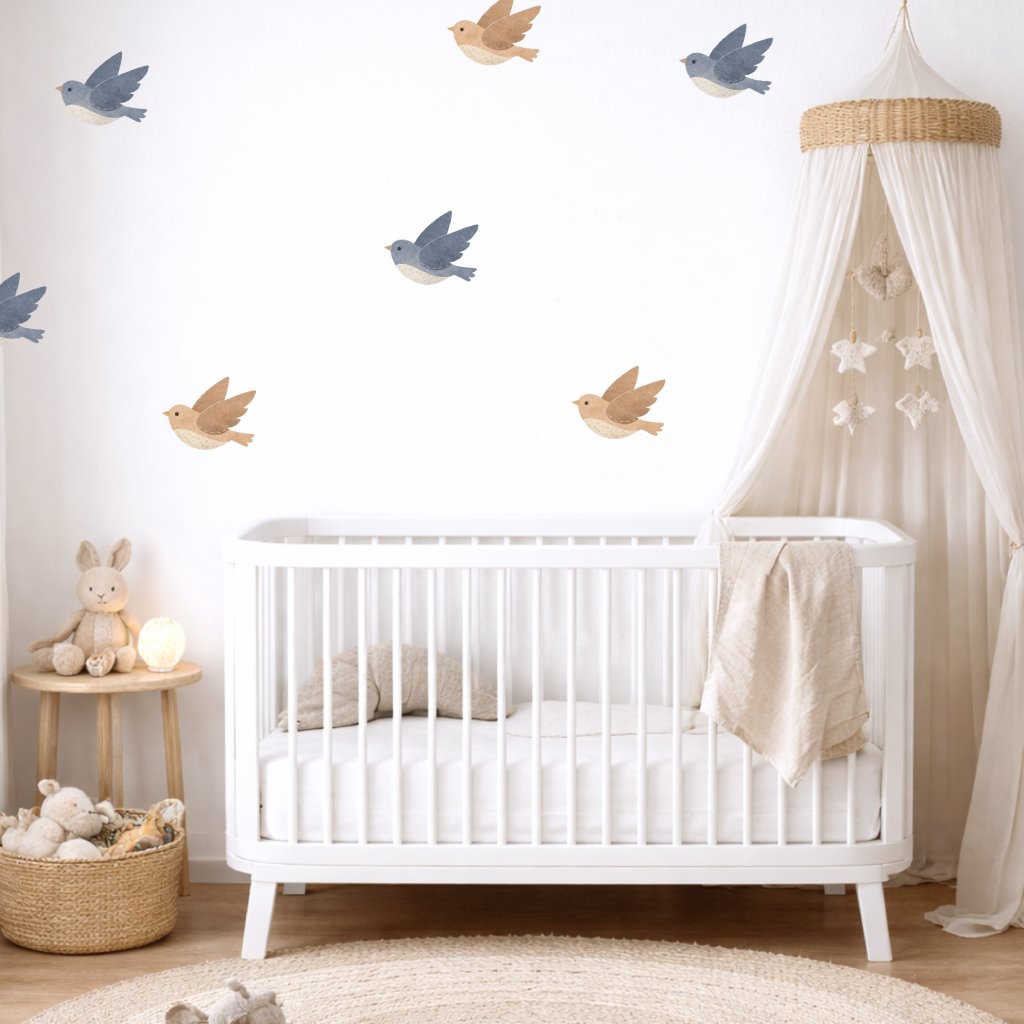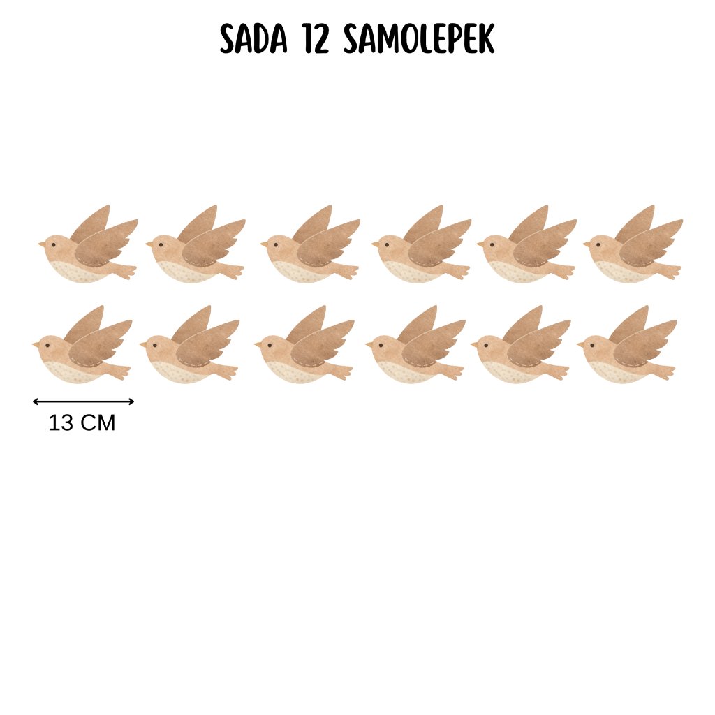 Ptáčci béžoví - přelepitelné dětské samolepky na zeď