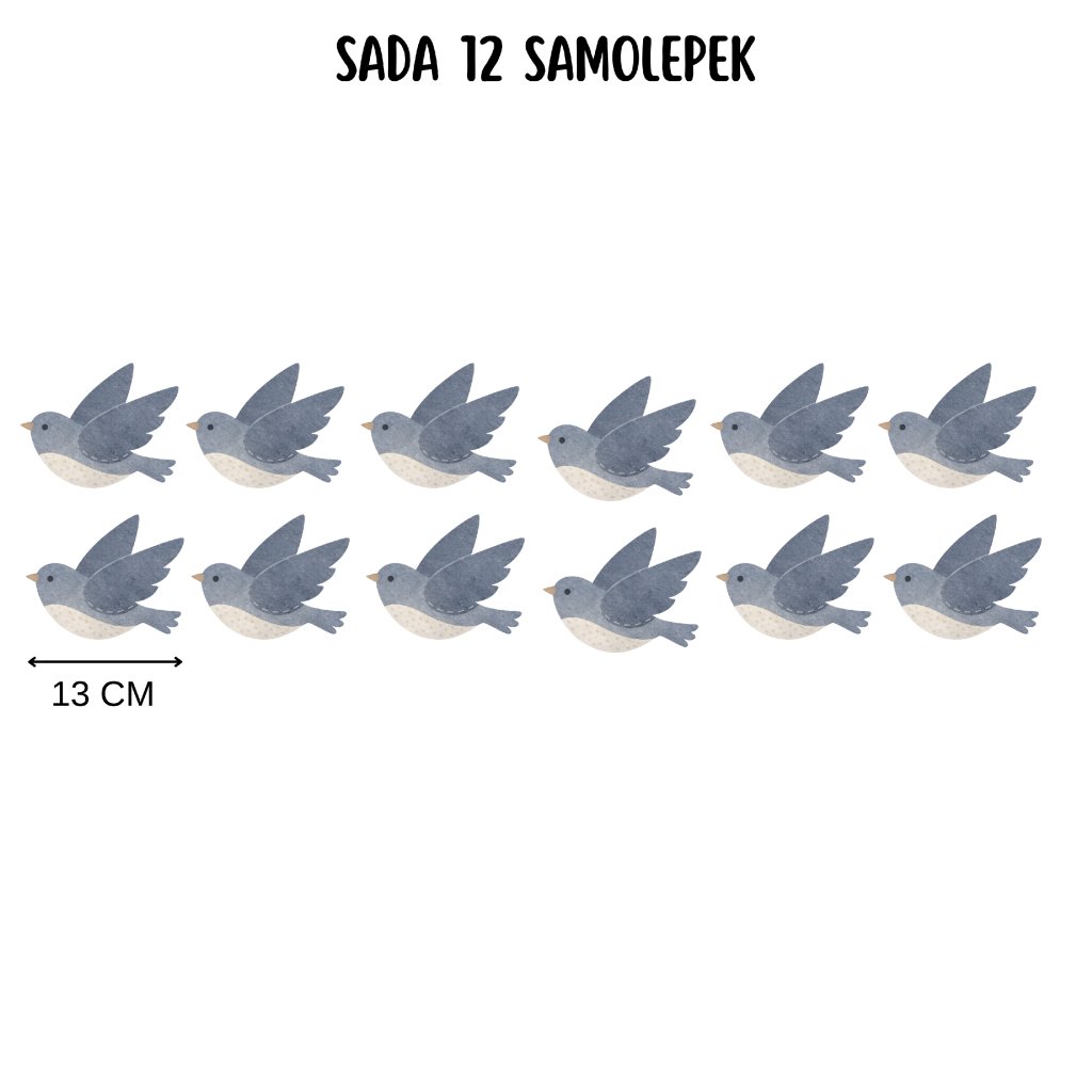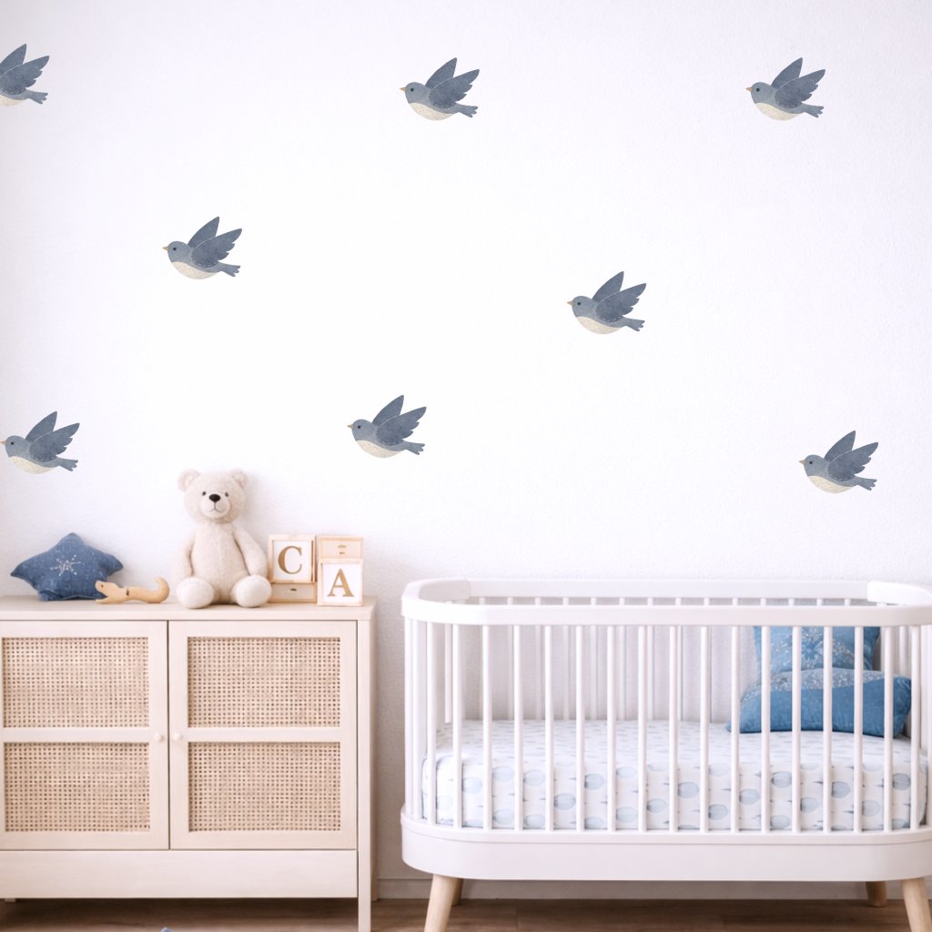Ptáčci modří - přelepitelné dětské samolepky na zeď
