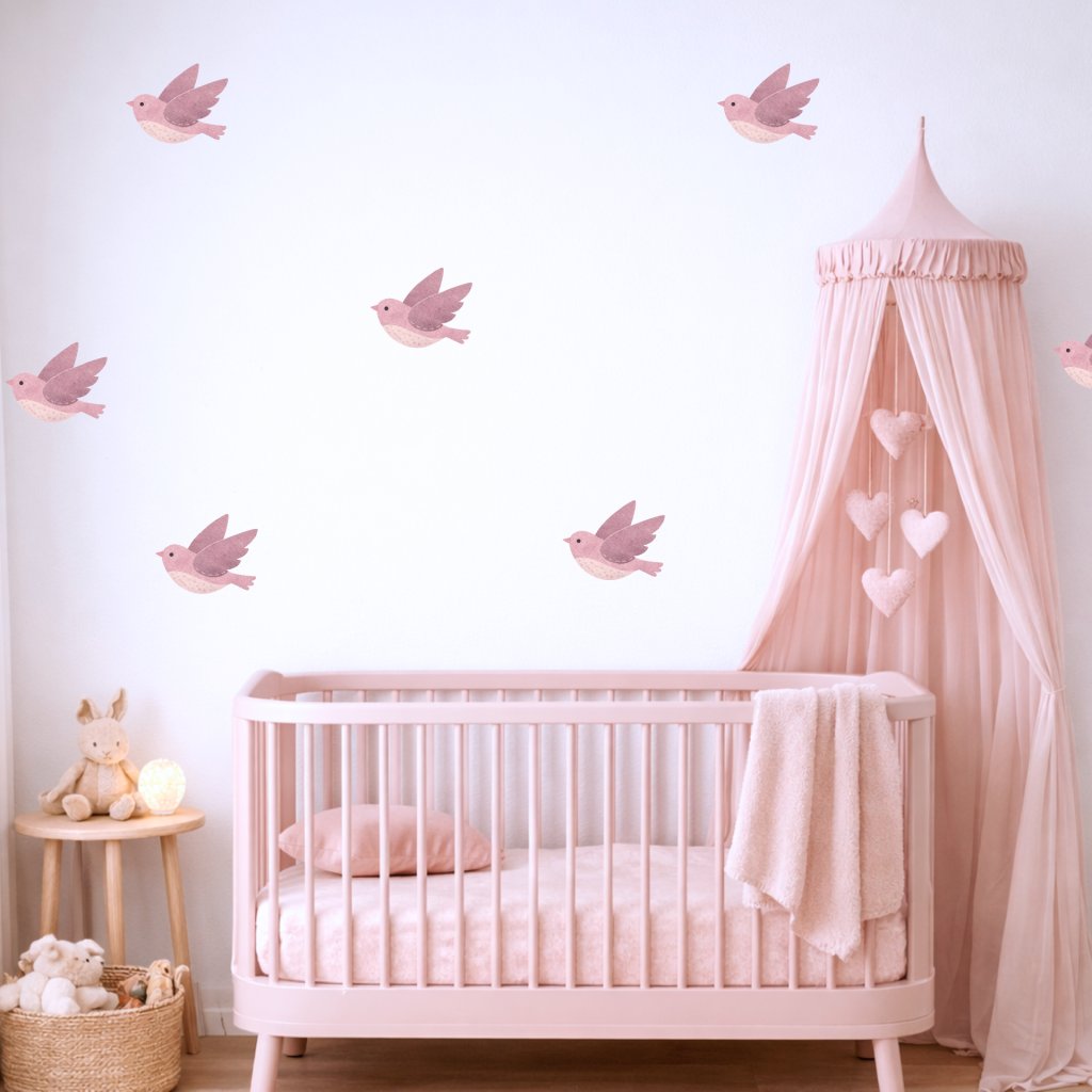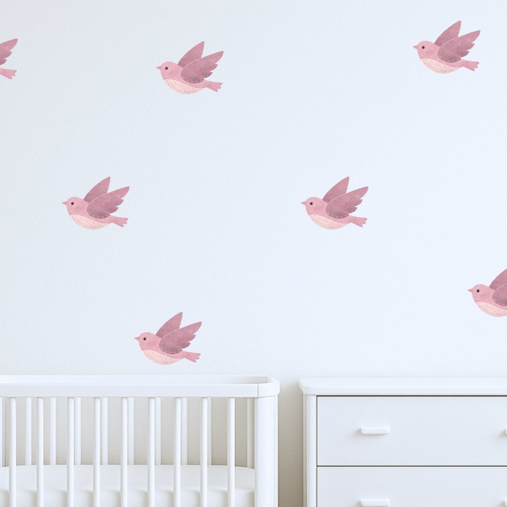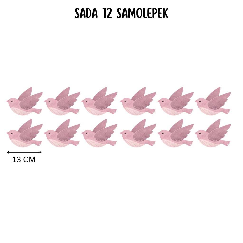 Ptáčci růžoví - přelepitelné dětské samolepky na zeď