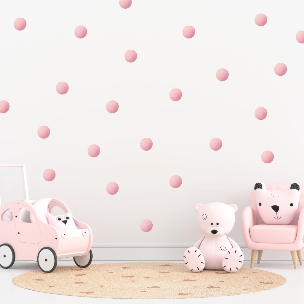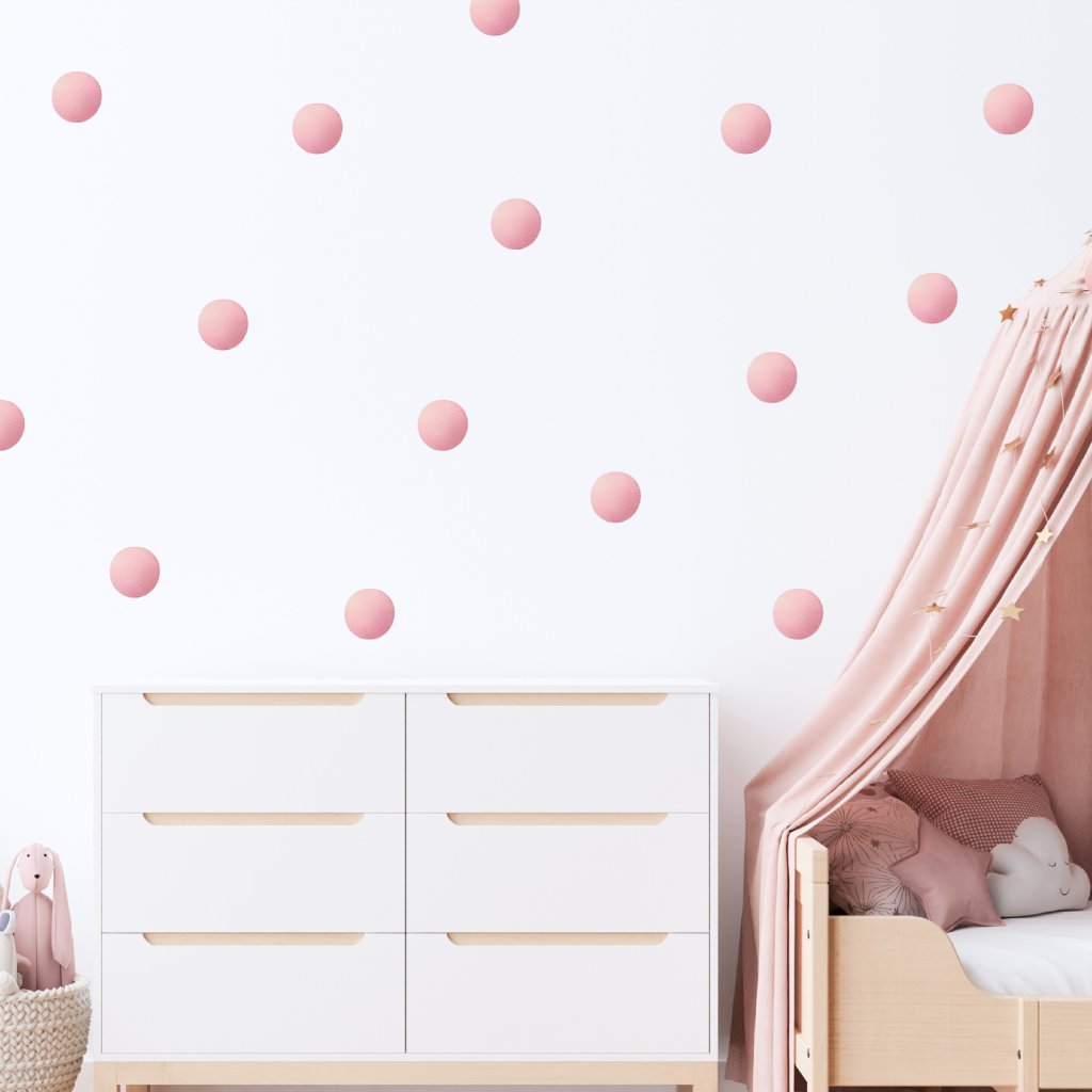 Jemné růžové puntíky dodají pokoji hravost a lehkost. Skvěle doplní dětský pokoj, vytvoří útulnou atmosféru a snadno se kombinují s dalšími dekoracemi. 🎀✨