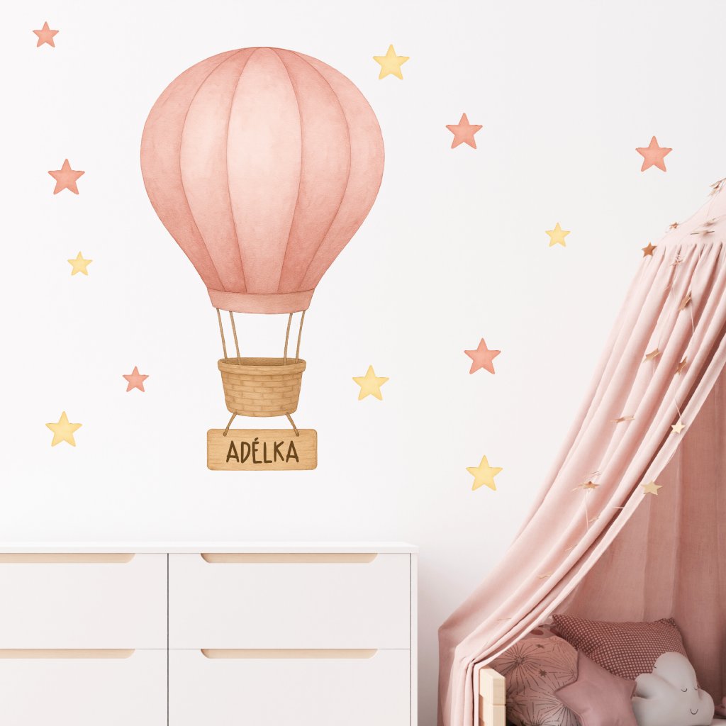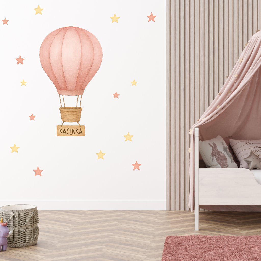 Růžový balon se jménem - přelepitelné samolepky na zeď