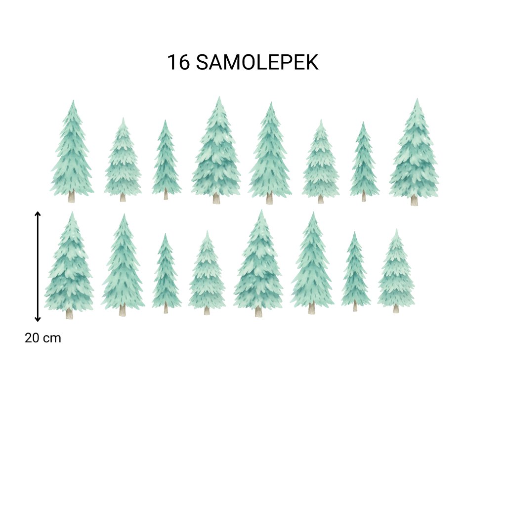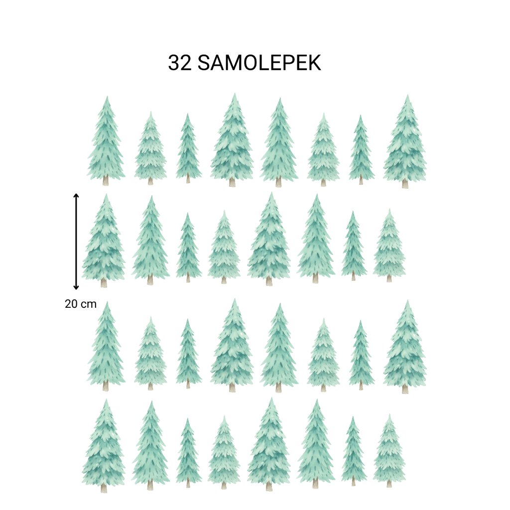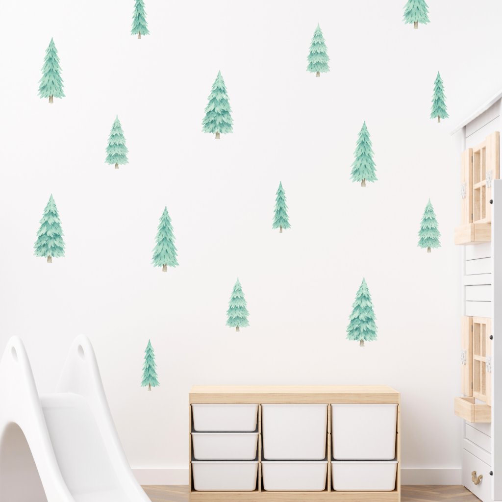 Vneste do pokoje kouzlo přírody! Samolepky s jemnými zelenými stromečky vytvoří klidnou, útulnou atmosféru a skvěle doplní pokoj malých dobrodruhů i milovníků lesa.