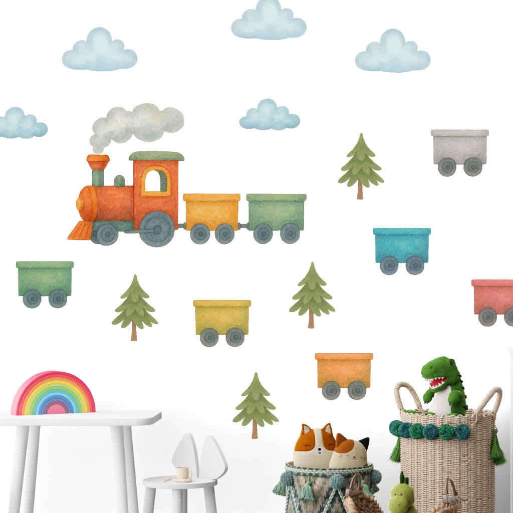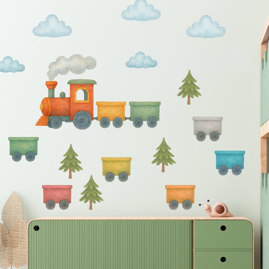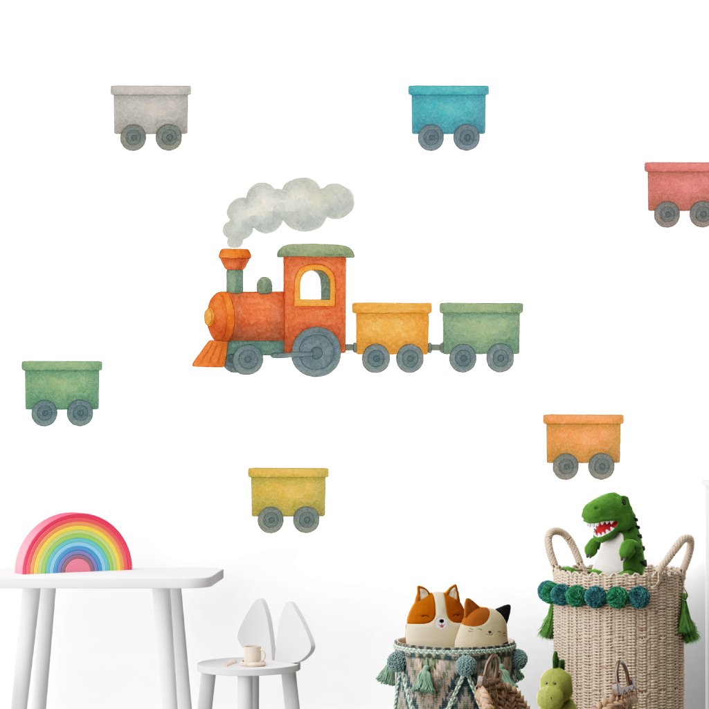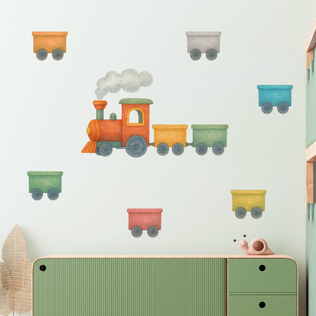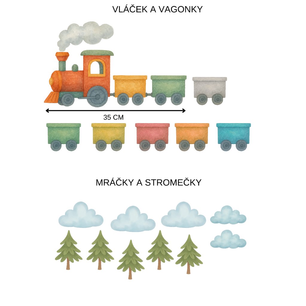 Vláček a vagonky - přelepitelné samolepky na zeď
