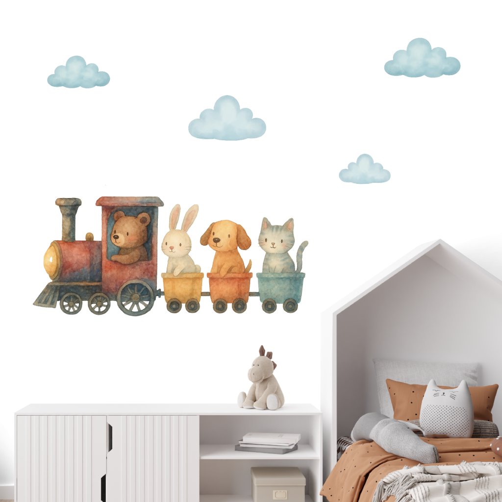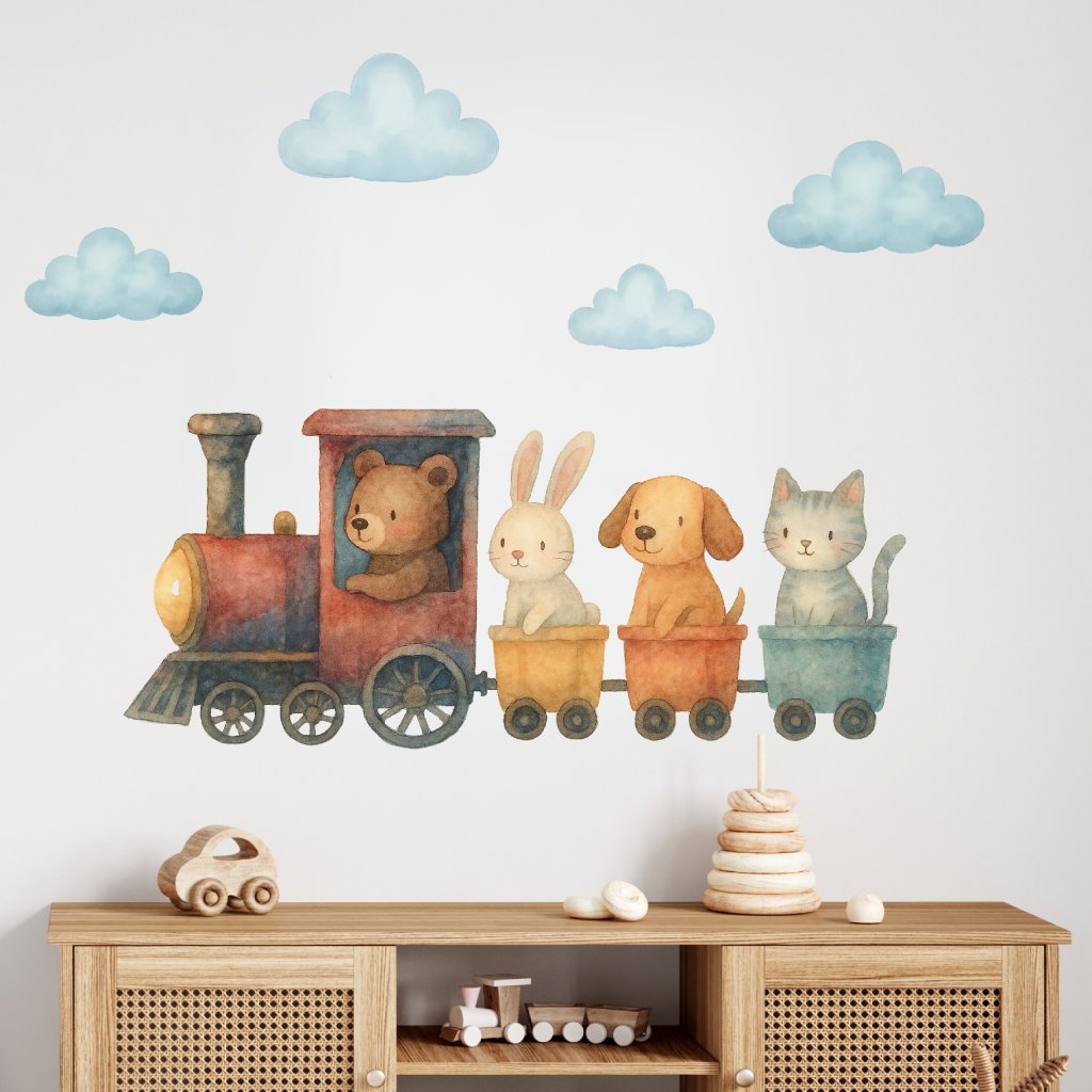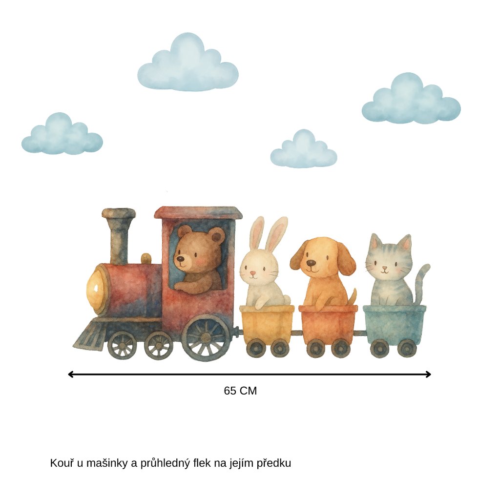 Vláček se zvířátky - přelepitelné samolepky na zeď