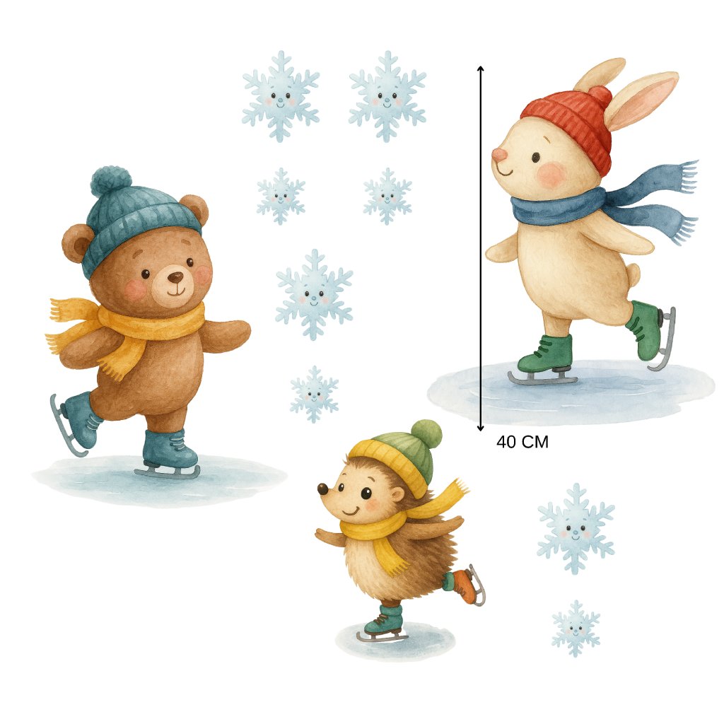 Zvířátka na bruslích - dětské textilní samolepky na zeď