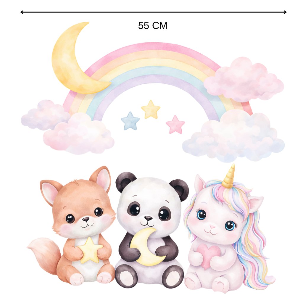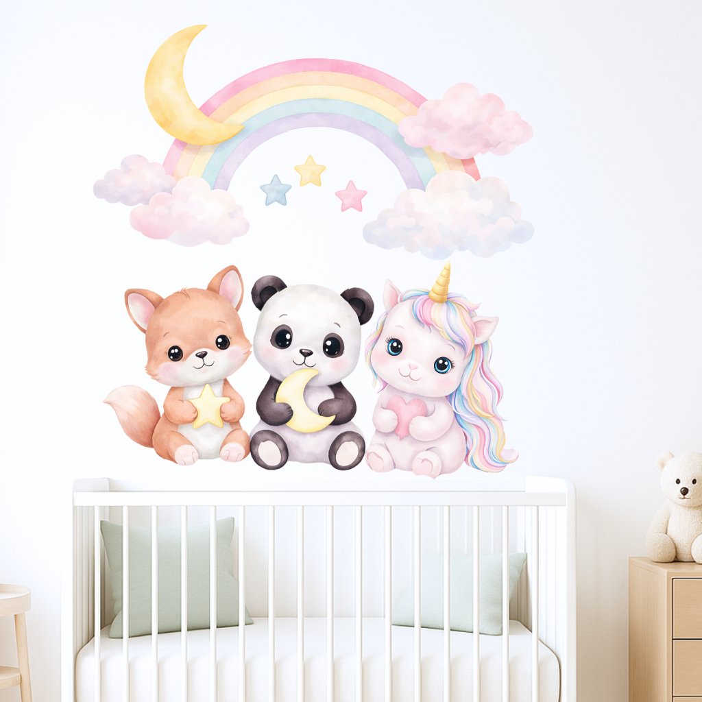Zvířátka pod duhou - přelepitelné samolepky na zeď