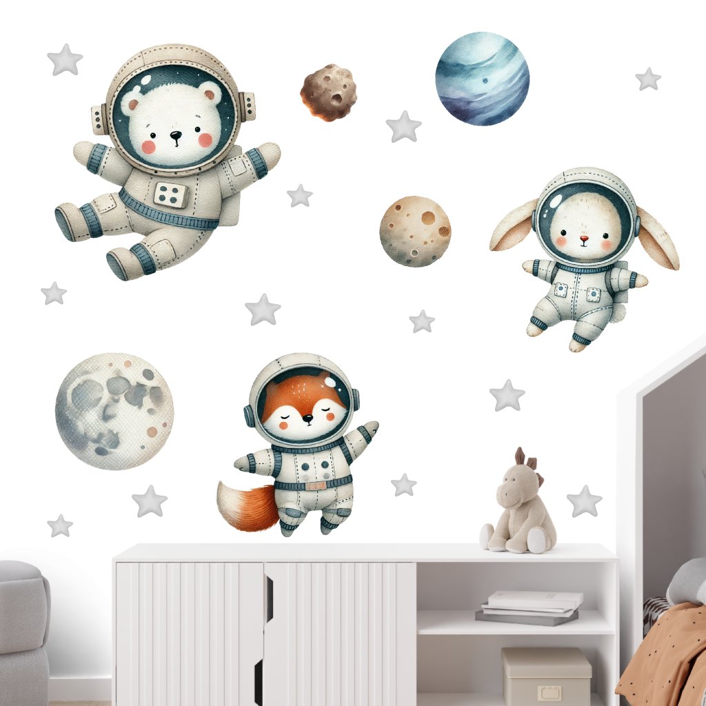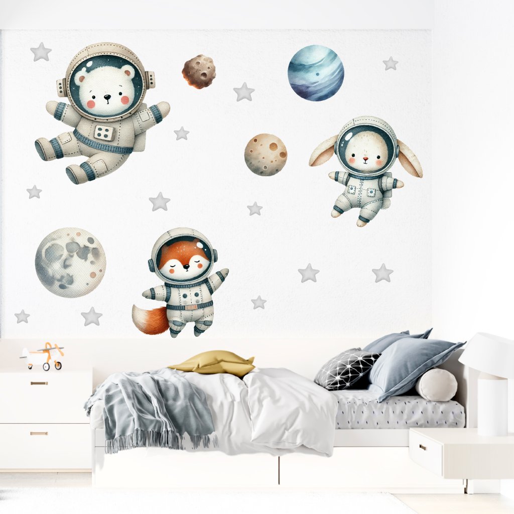 Zvířátka ve vesmíru - dětské textilní samolepky na zeď
