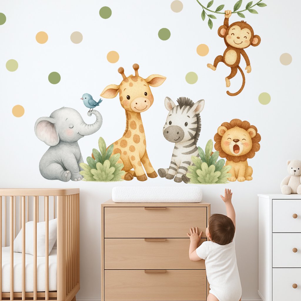 Zvířátka z Afriky - přelepitelné dětské samolepky na zeď