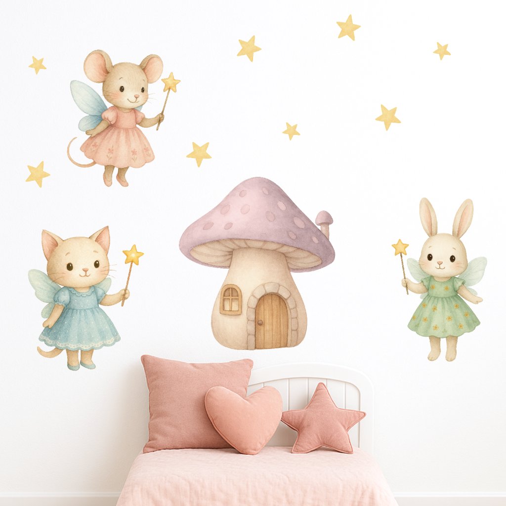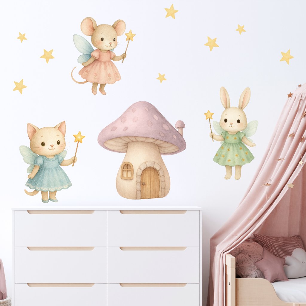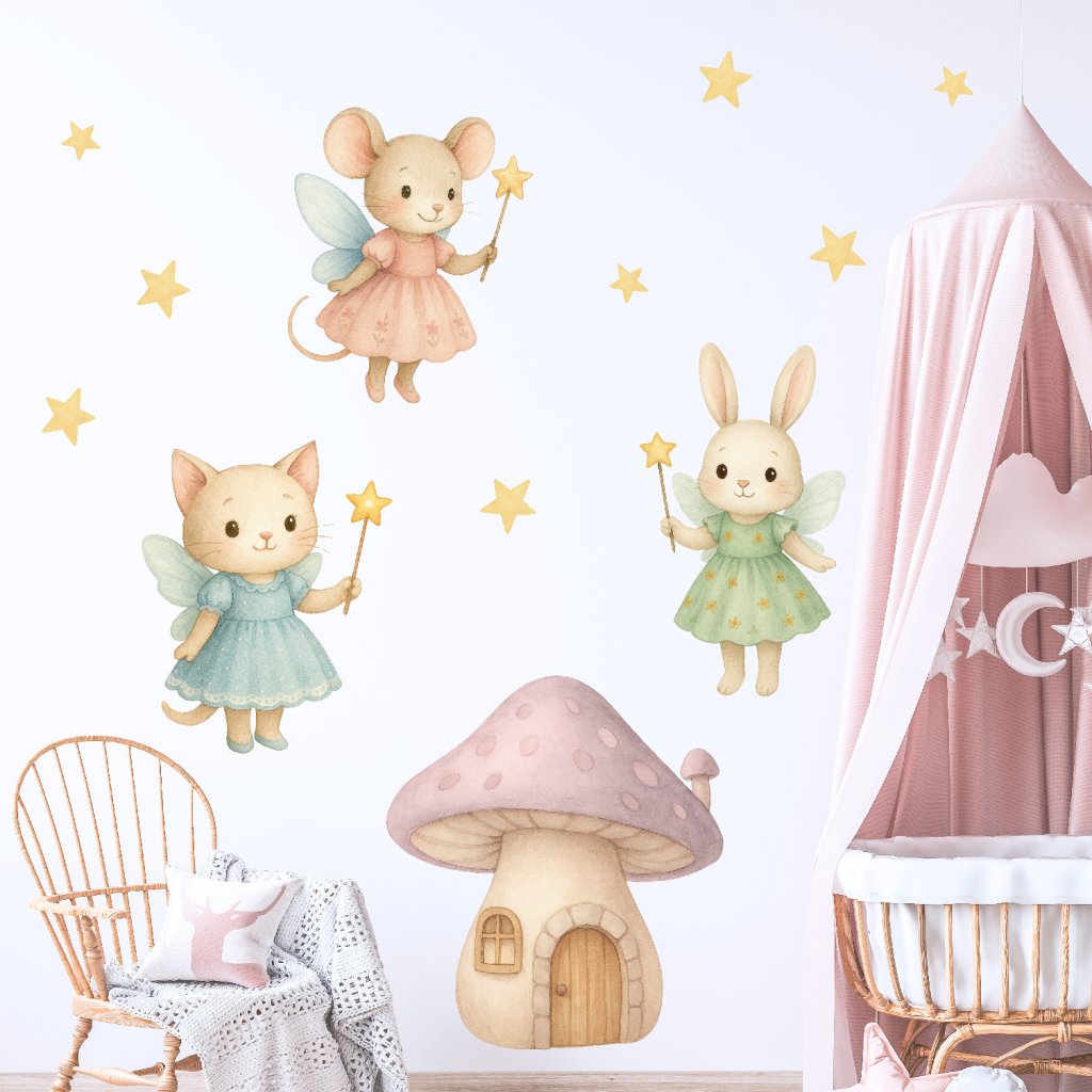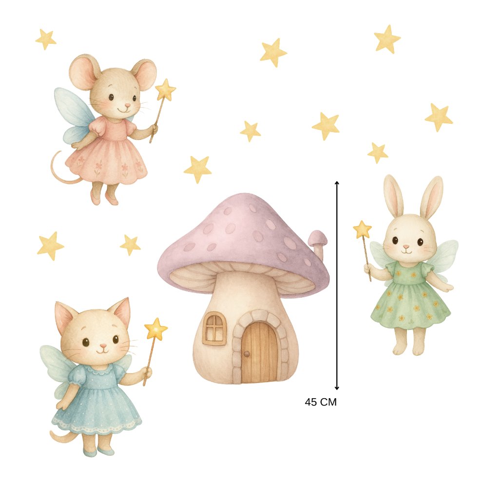 Kouzelné zvířátkové víly přenesou děti do světa fantazie a snů. Myška, kočička a králíček s kouzelnými hůlkami rozzáří každý pokojíček a vytvoří místo plné něhy, hvězdiček a pohádkové atmosféry.